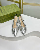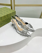SLINGBACK PUMP 6 CM IN SILVER GLOSSY CALFSKIN
