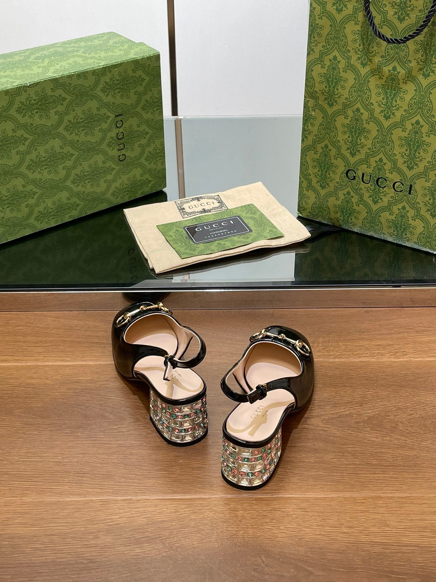 WOMEN'S HORSEBIT SLINGBACK 55MM IN BLACK CALFSKIN WITH RHINSTONES