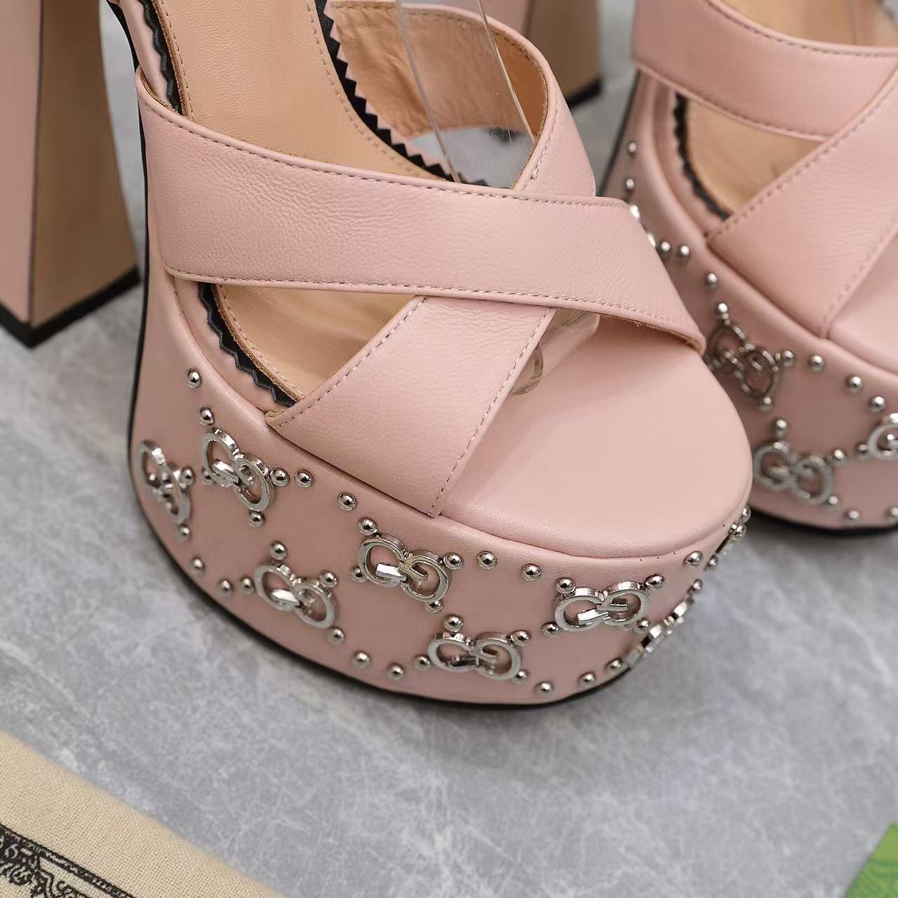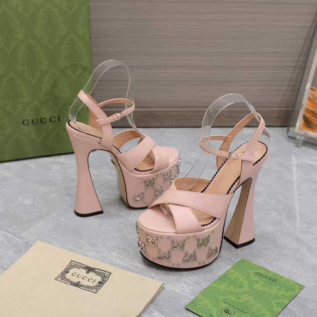GG Flatform 155mm High Heel Sandal in Baby Pink Cowhide