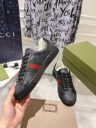 GG ACE GG SUPREME TRAINER BLACK CALFSKIN WITH PATTERNS