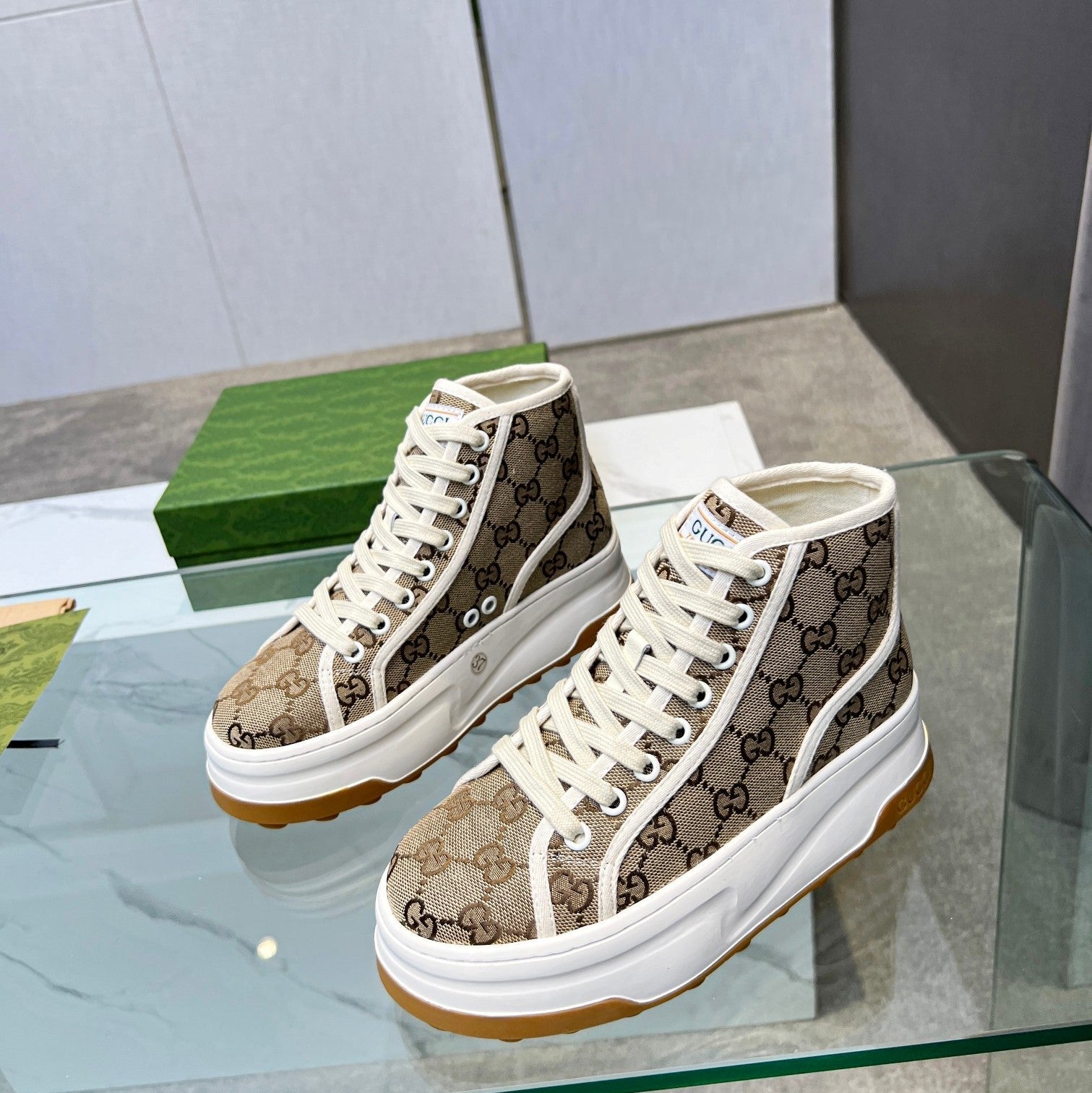 GG High Top Sneakers 50mm White Brown Monogram Canvas 457432