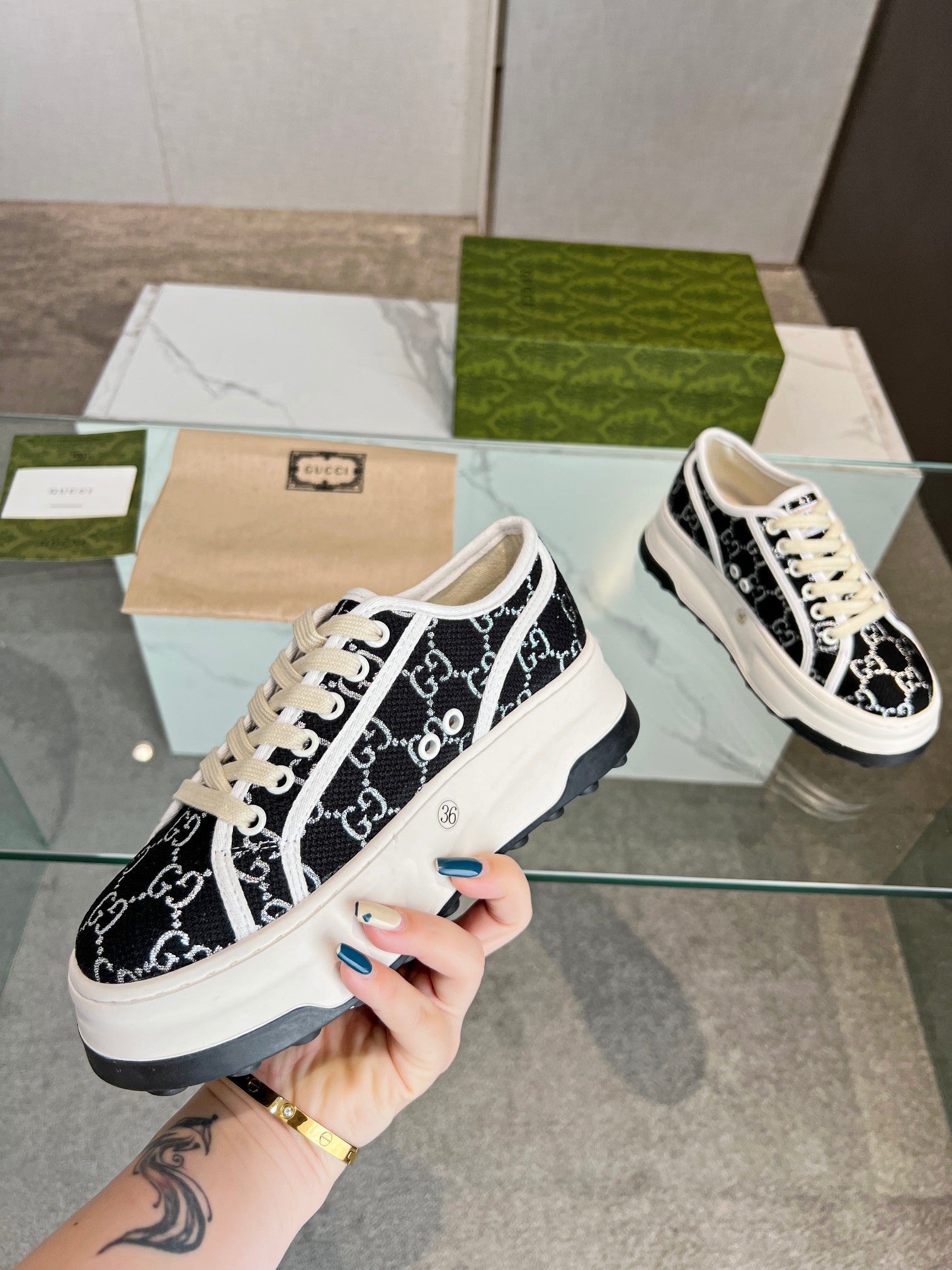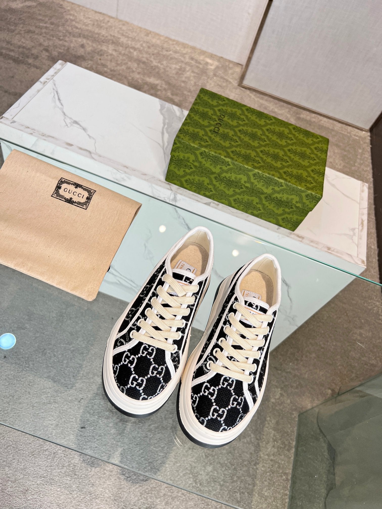 GG Low Top Sneakers 50mm Black White Monogram Canvas 457435