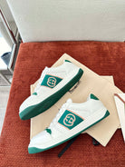 GG SCREENER SNEAKER WHITE AND DARK GREEN CALFSKIN
