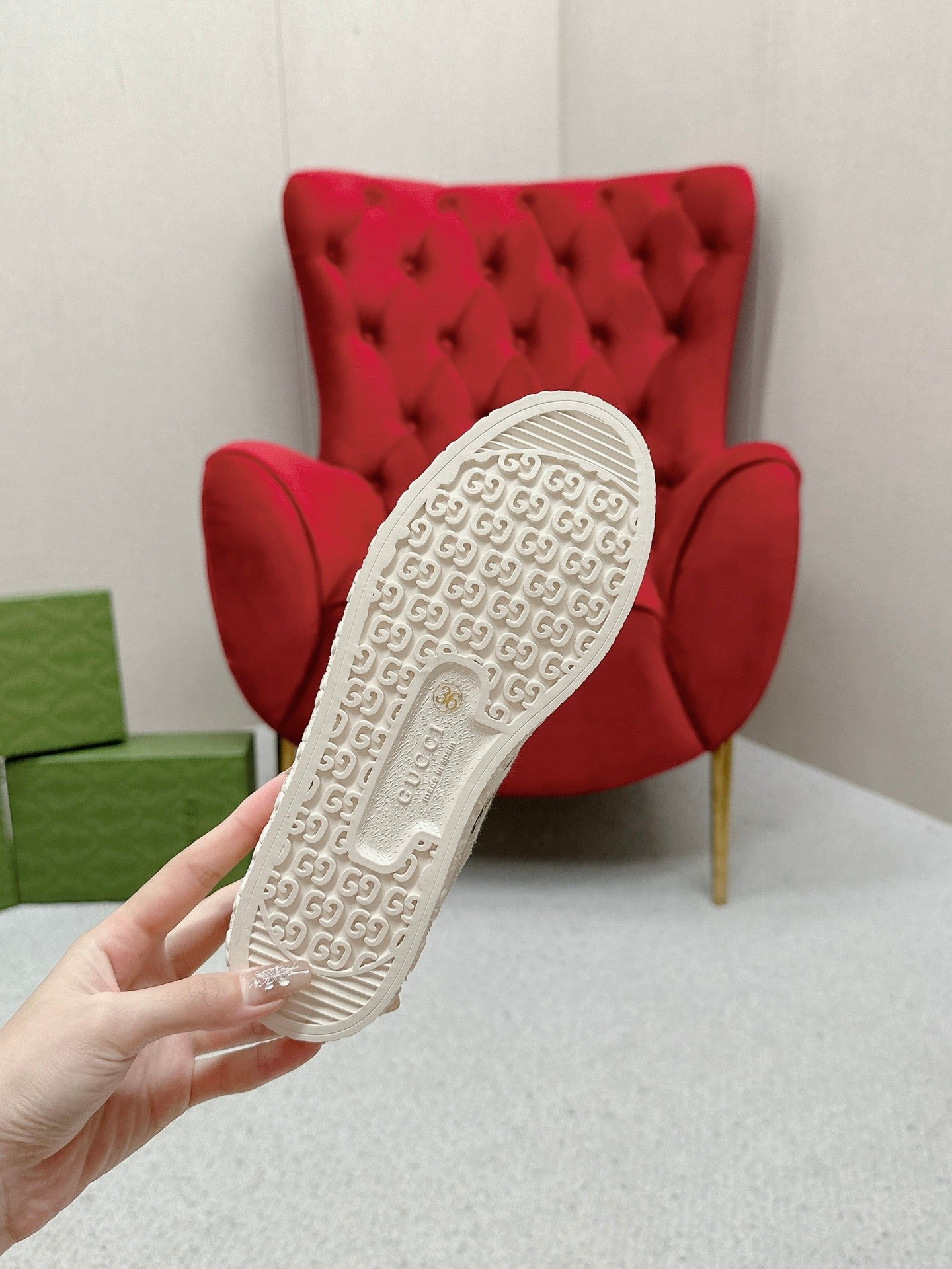GG TRAINER SCALLOPED TOE LIGHT GRAY DENIM