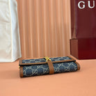 Gucci Jackie Chain Wallet Blue Brown Canvas Leather 255173