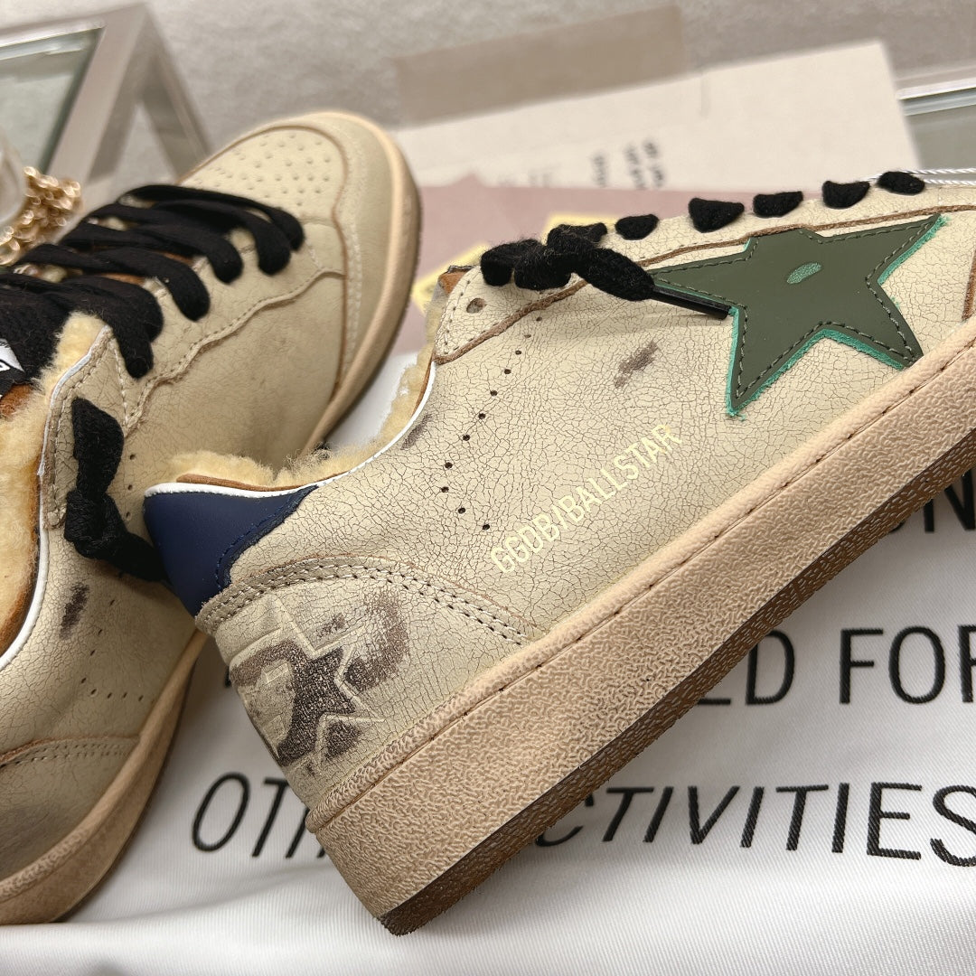 BALL STAR SNEAKERS IN RODEO DUST BEIGE CALFSKIN WITH GREEN STAR BLUE HEEL TAB
