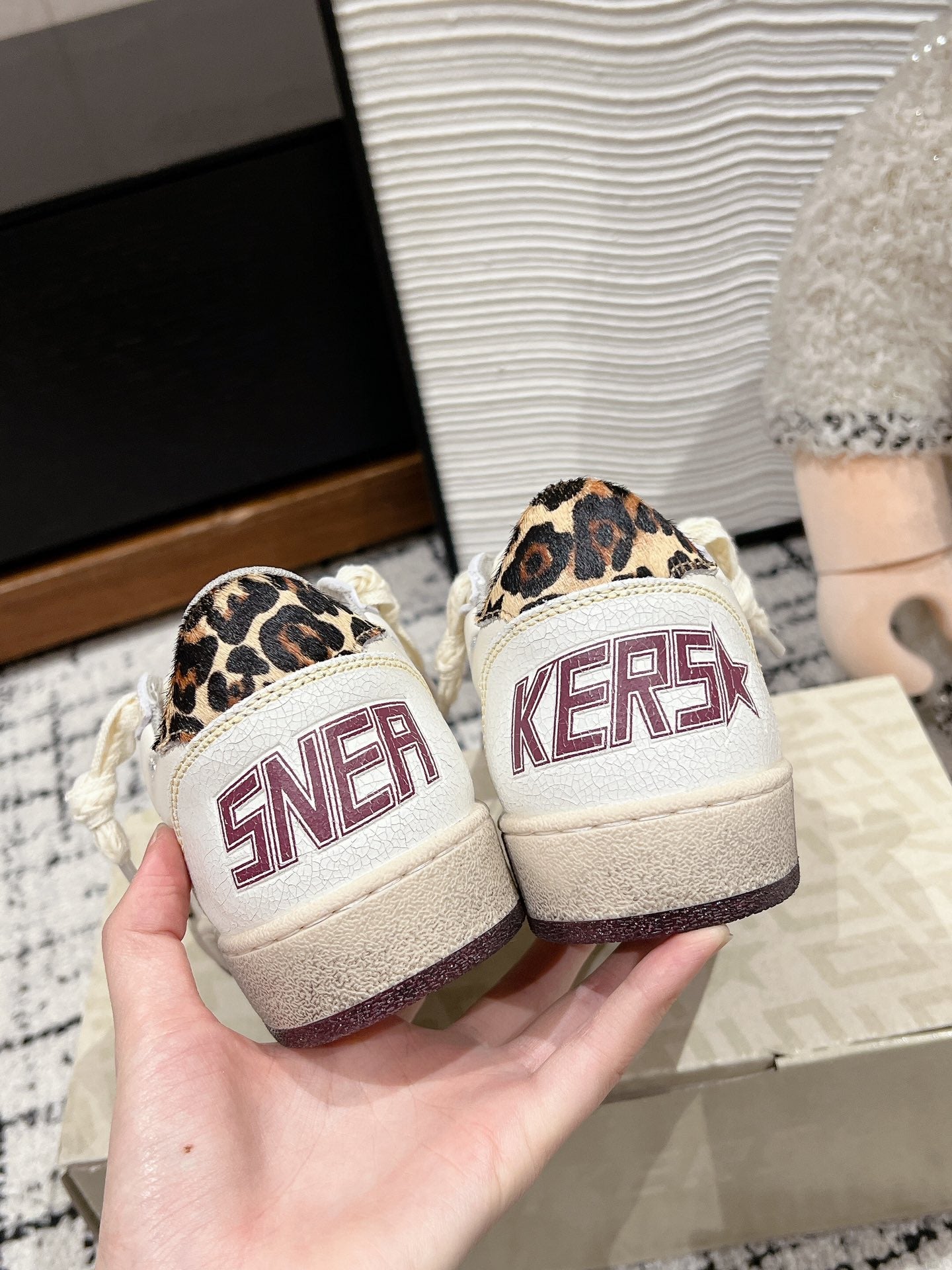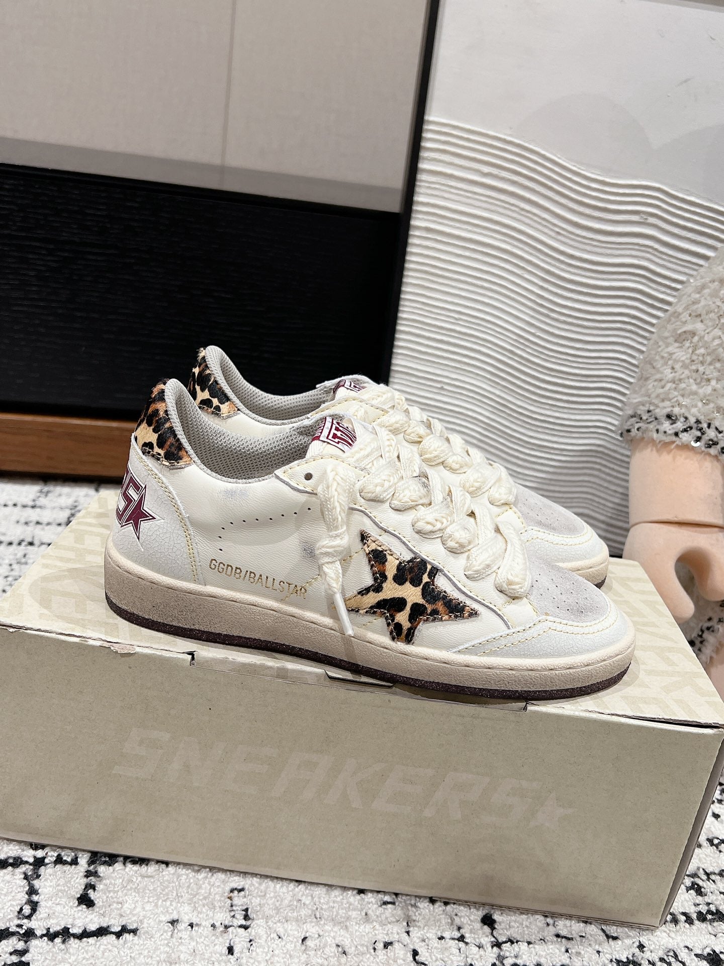 BALL STAR SNEAKERS WHITE CALFSKIN WITH LEOPARD STAR AND HEEL LAB
