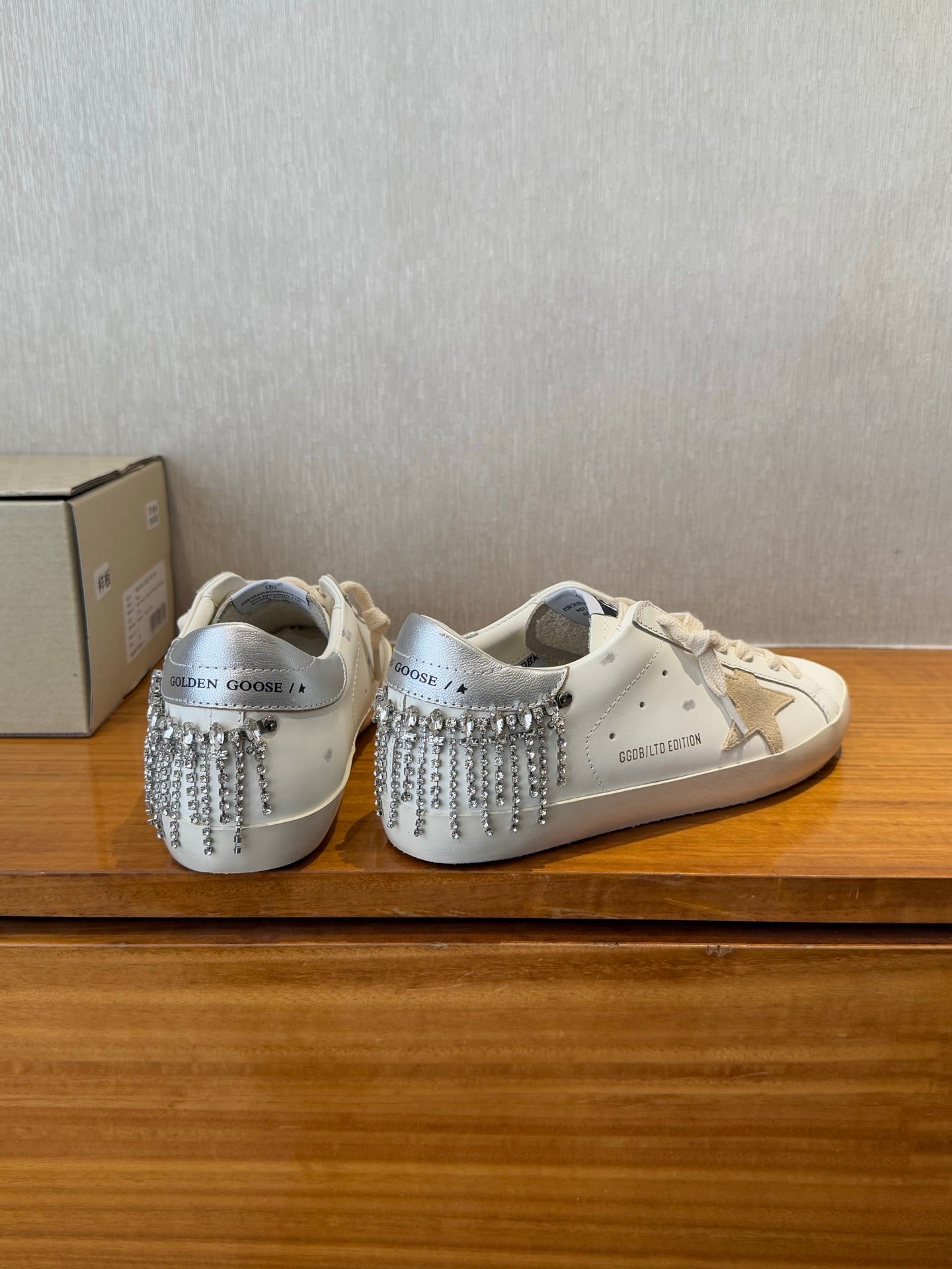 BALL STAR SNEAKERS WITH CRYSTAL TASSEL BEIGE SUEDE STAR WHITE CALFSKIN UPPER