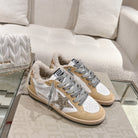 BALL STAR SNEAKERS WITH GLITTER STAR IN WHITE CALFSKIN AND BROWN SUEDE