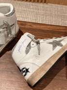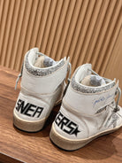 SKY-STAR SNEAKERS IN WHITE NAPPA LAMBSKIN WITH SILVER GLITTER STAR AND HEEL TAB
