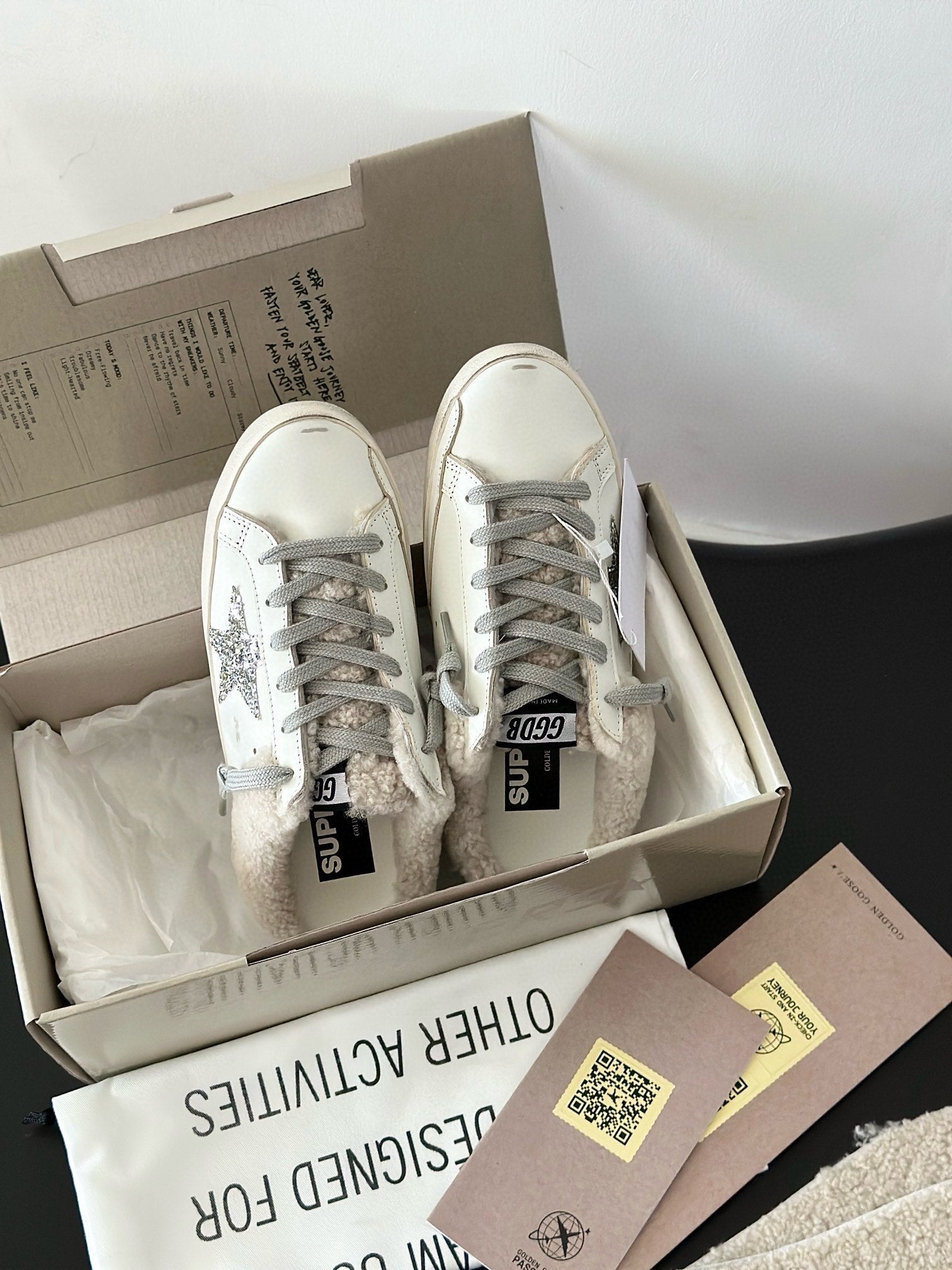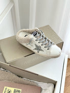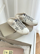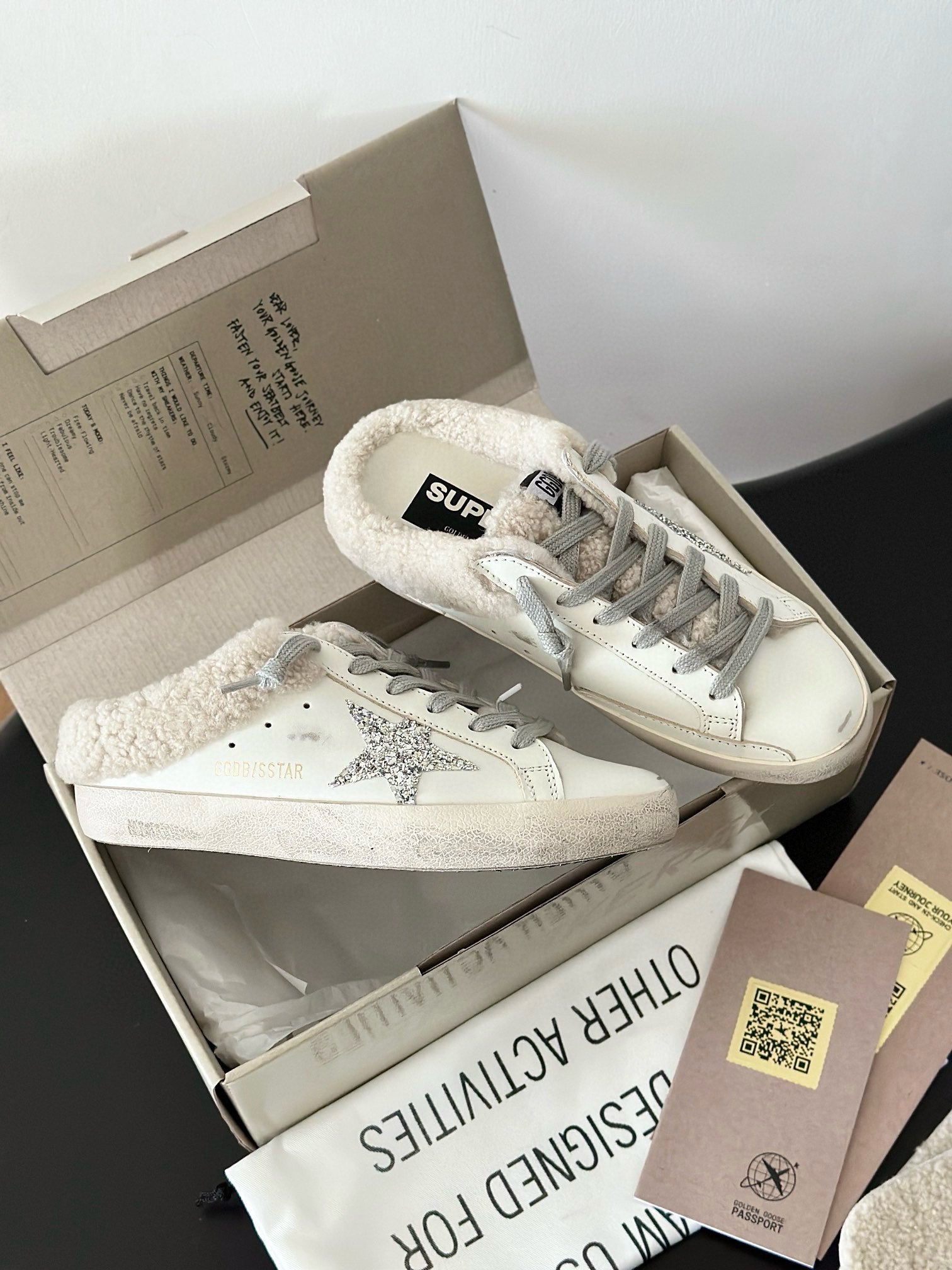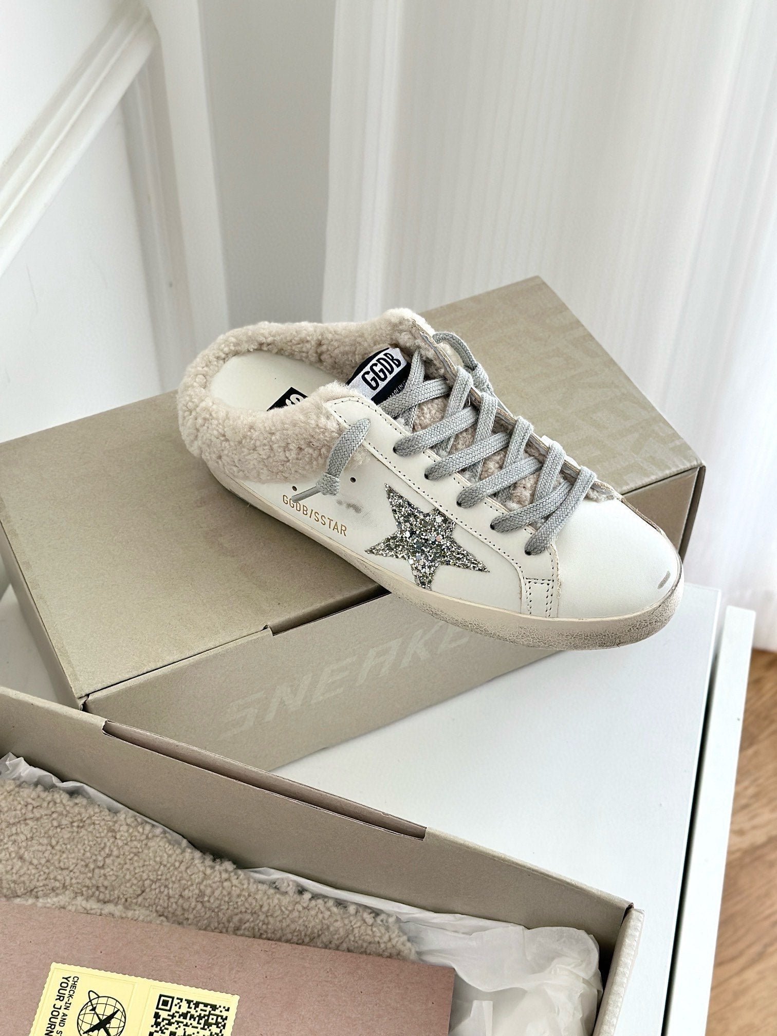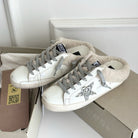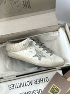 SUPER-STAR SABOTS IN WHITE CALFSKIN WITH GLITTER WHITE STAR