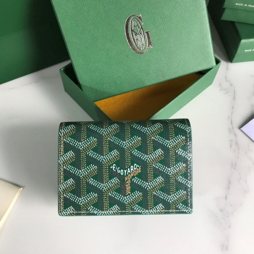 Goyard Malesherbes Card Wallet 10cm Green Canvas & Calfskin
