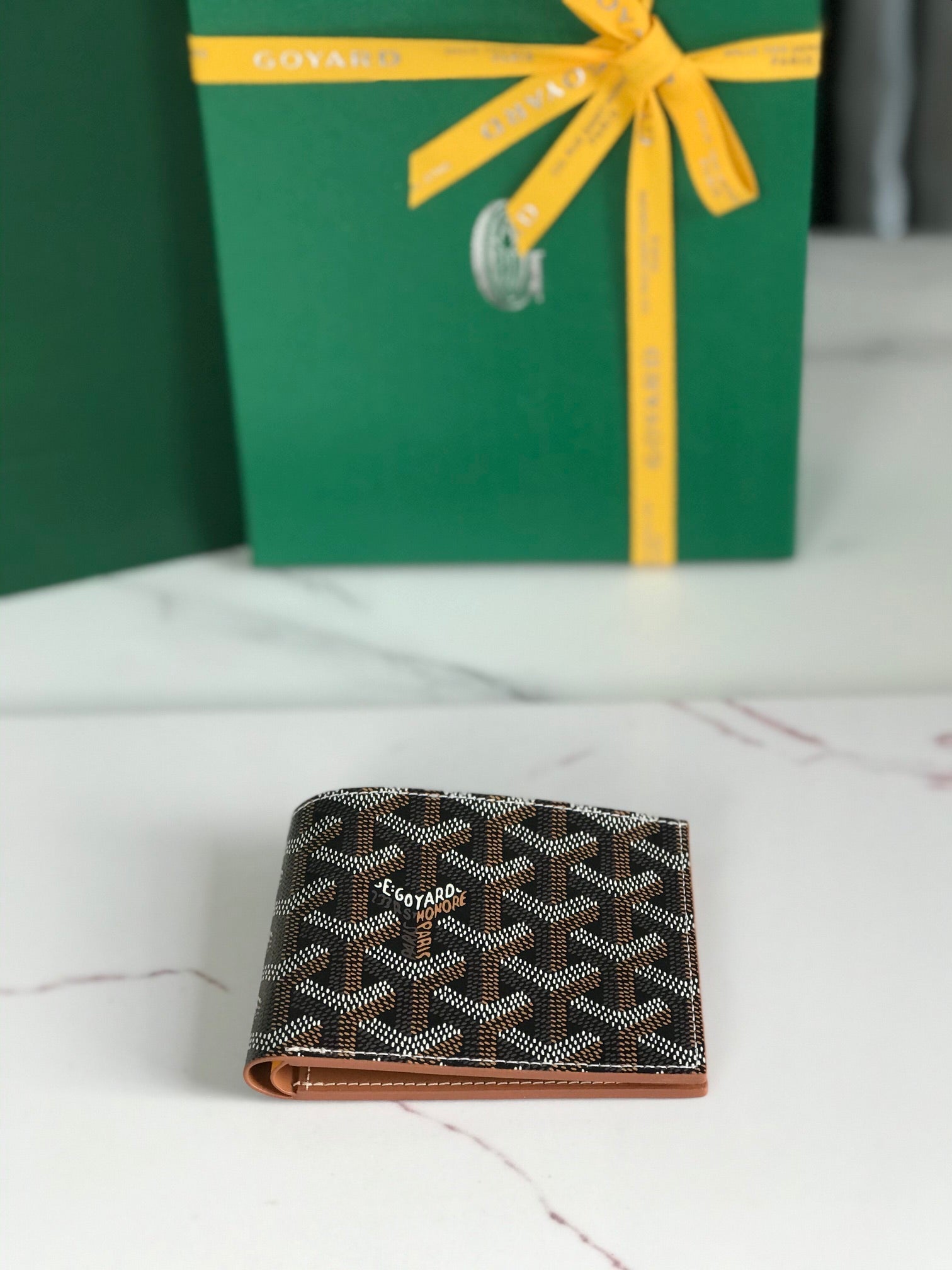 Goyard Victoire Wallet 11cm Black Tan Canvas & Cafskin