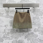 GG Brown Mix Light Green Canvas Mini Skirt With Embroidery