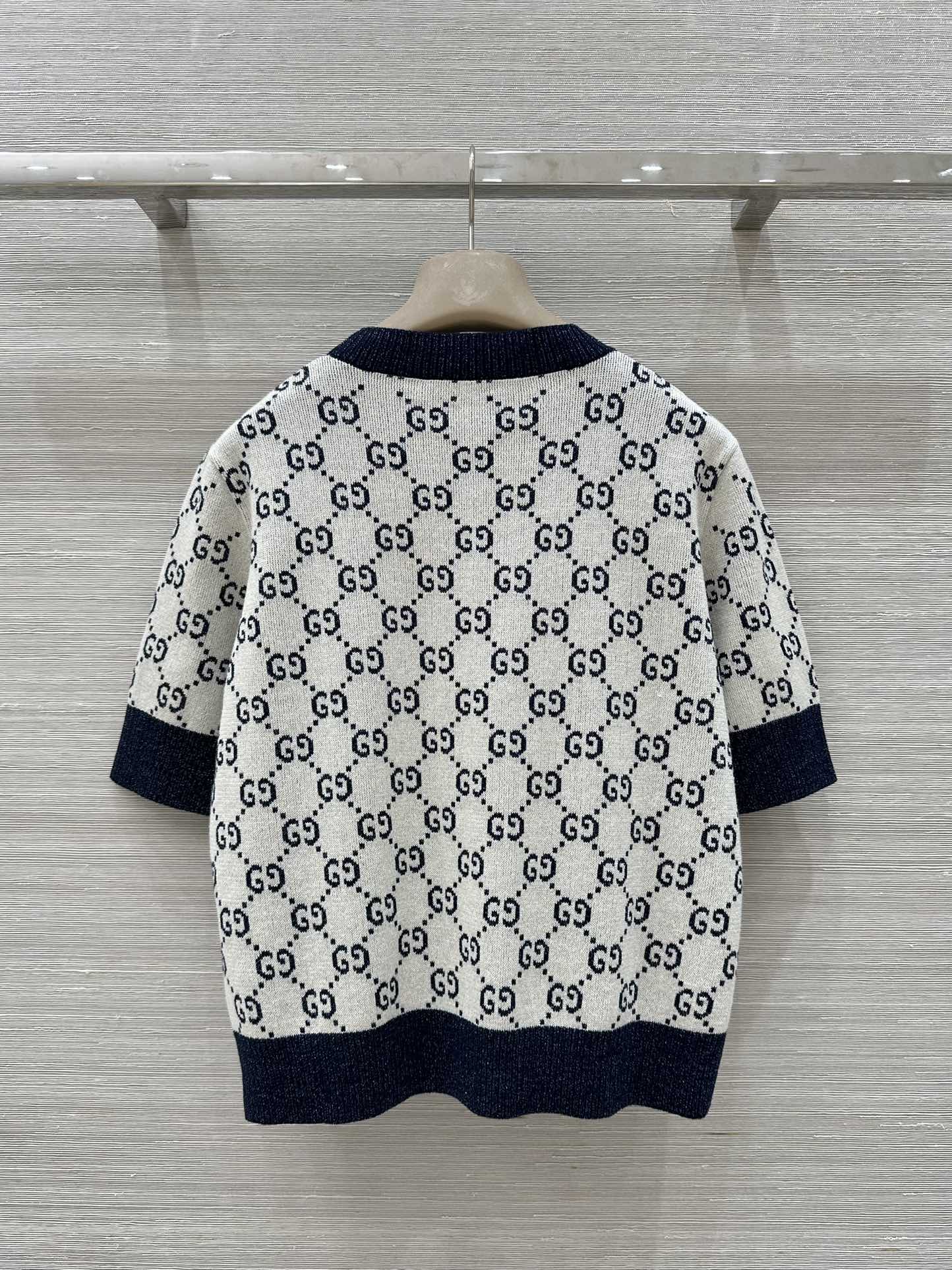 Gucci 2025 Knitted Round Neck Short-sleeved Top Blue Gray Cotton