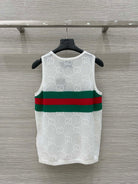 Gucci 25 Embroidered Jacquard Mesh Vest Top White Tencel