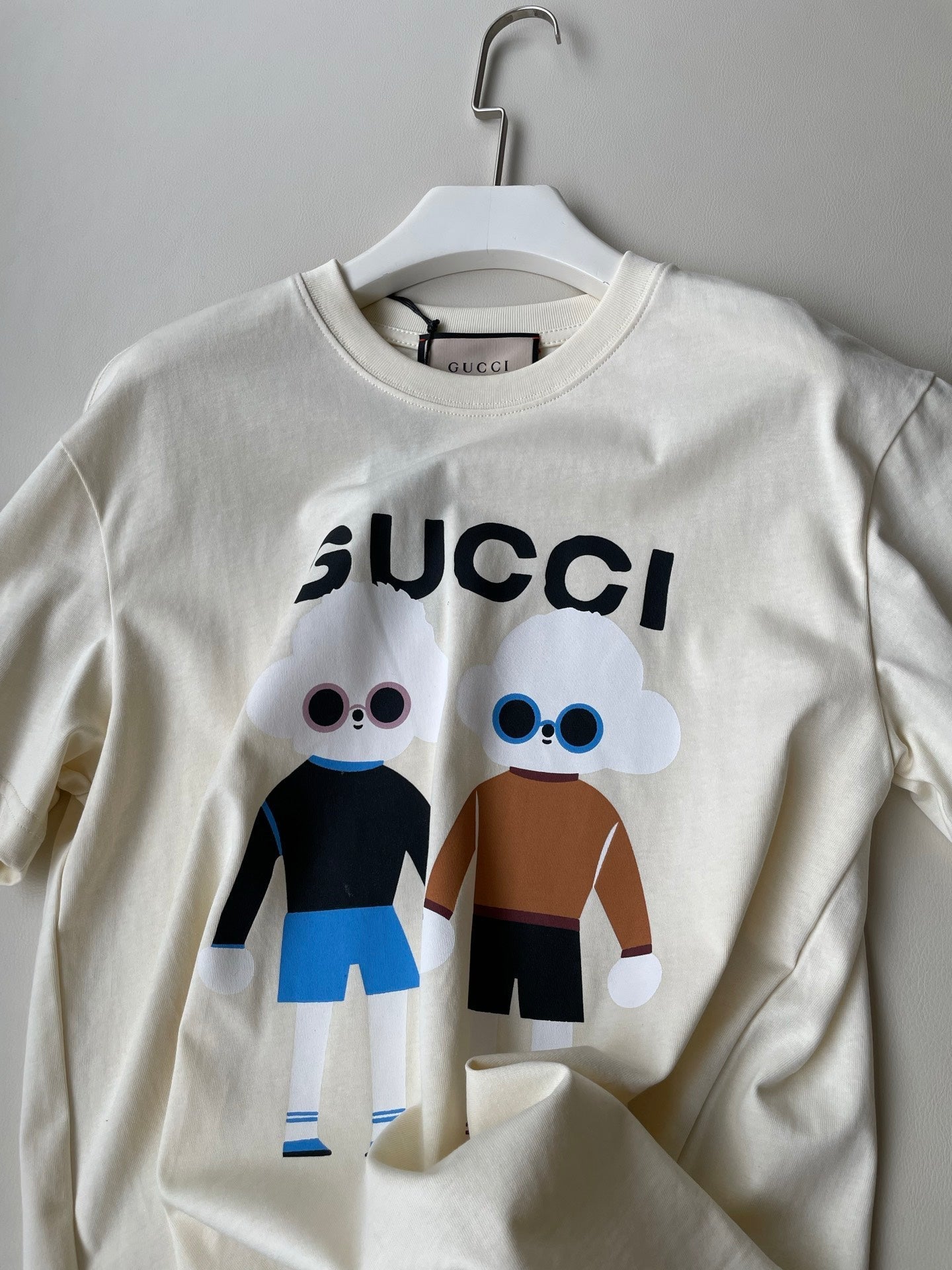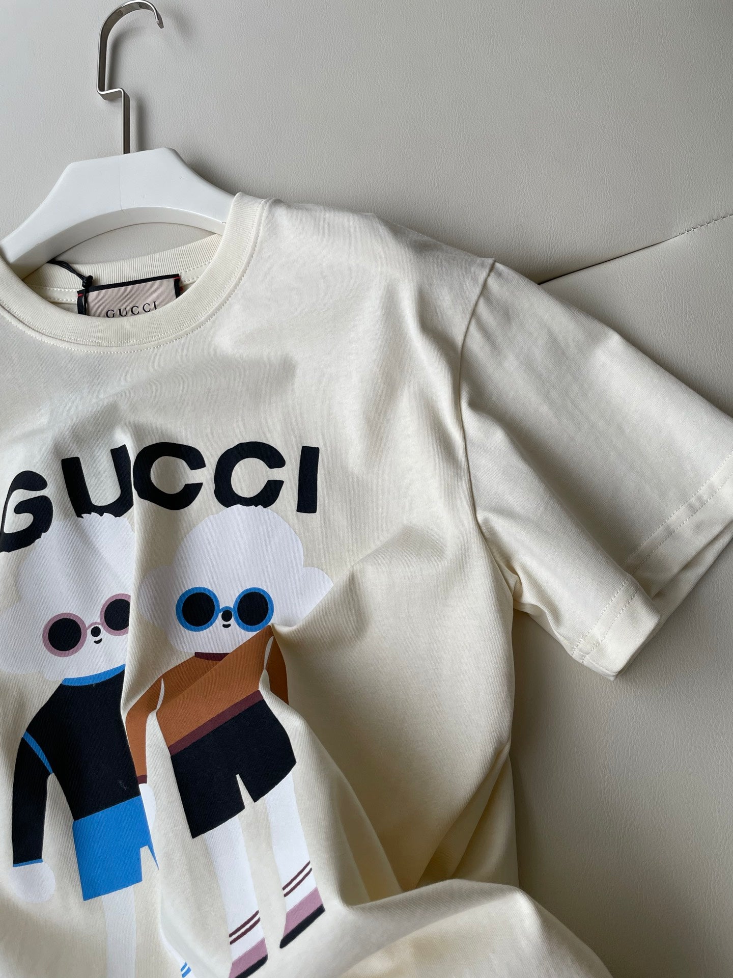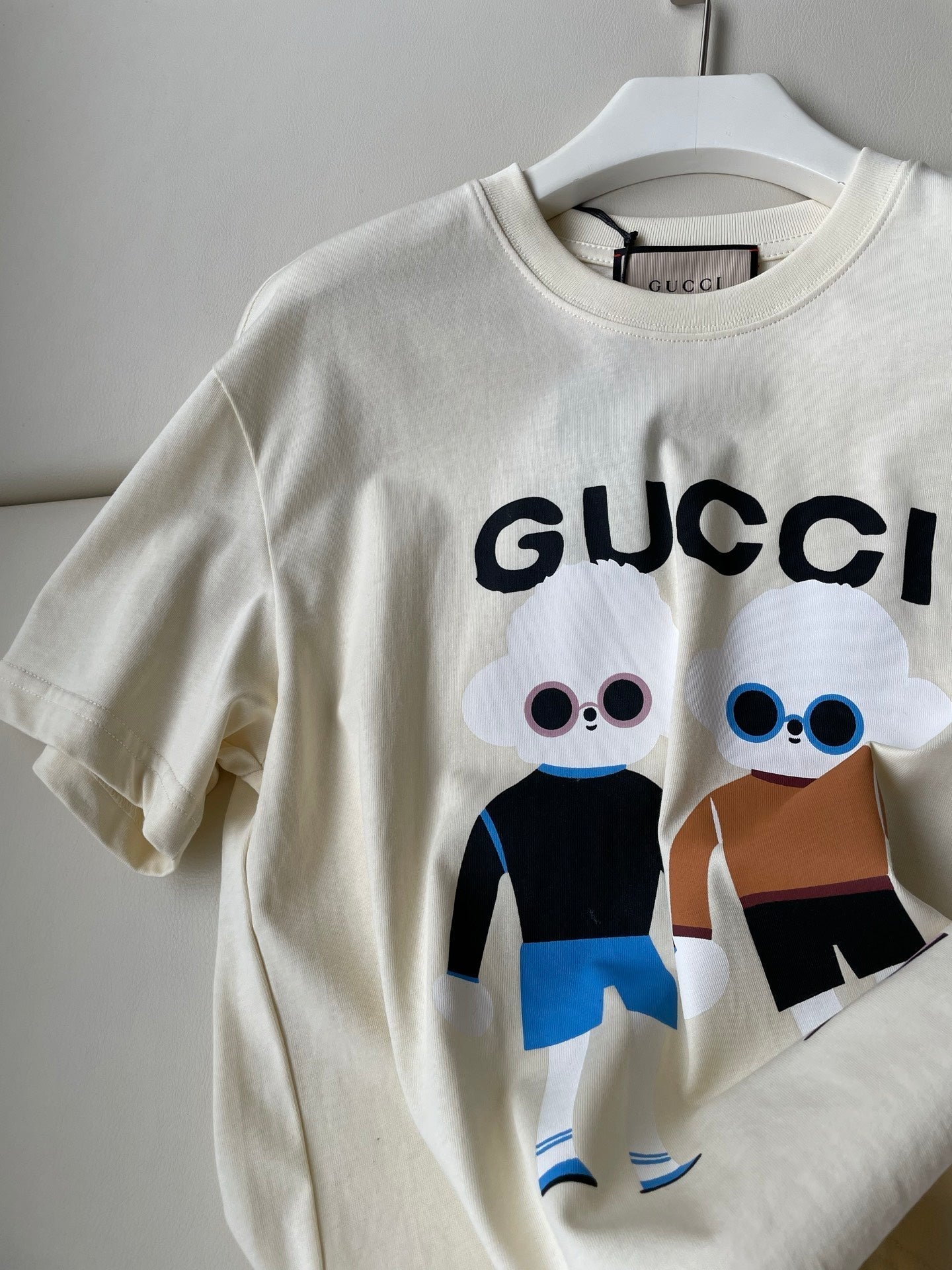 Gucci 25 Teddy Dog T-shirt Ivory Brown Black Cotton