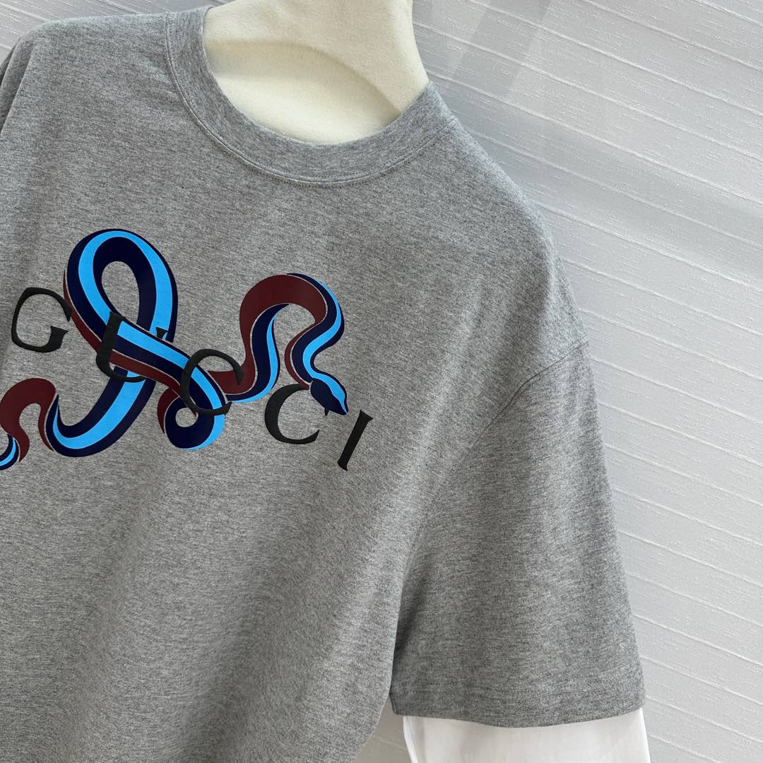 Gucci 2025 Print Short Sleeve T-shirt White Green Red Cotton