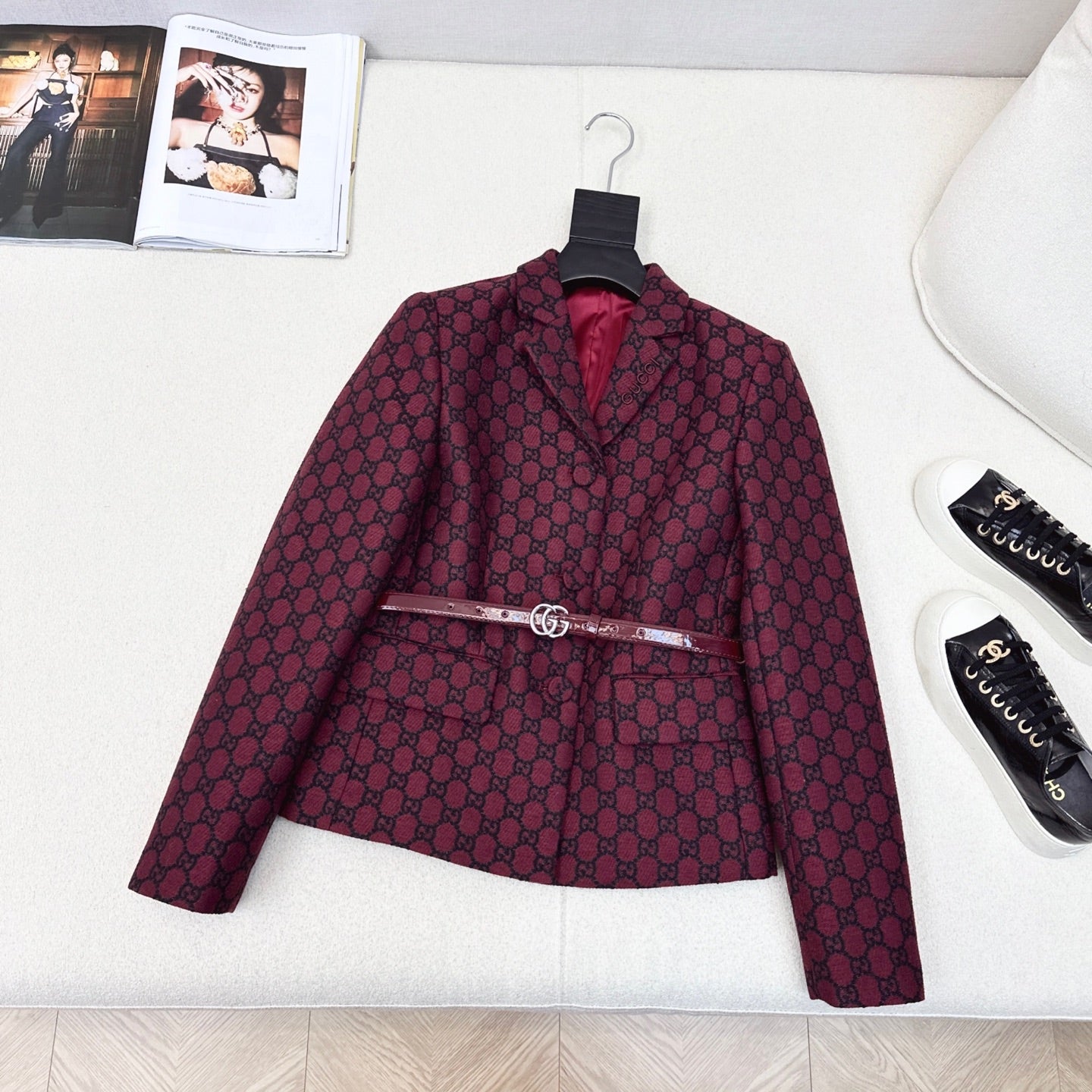 Gucci 25 Patterned Suit Red Jacquard Fabric