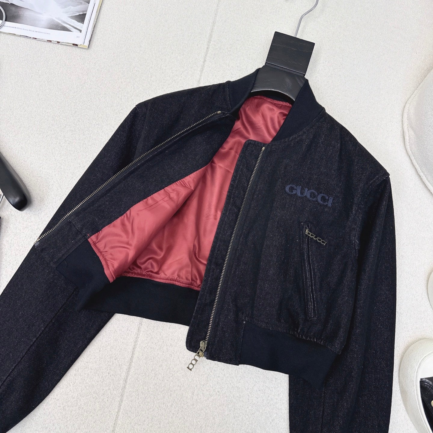 Gucci 25 Short Stand-up Collar Jacket Dark Blue Cotton 596441