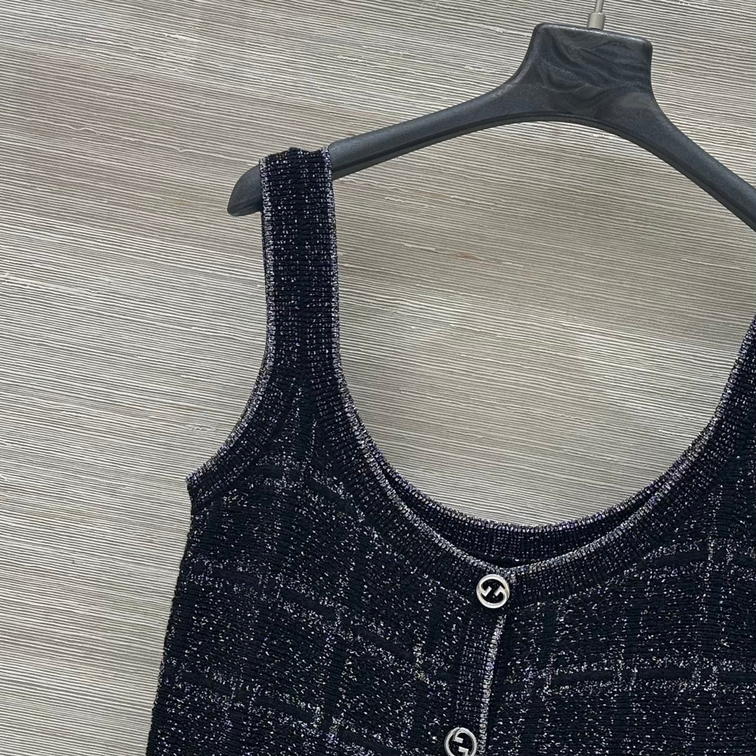 Gucci 25 Embroidered Jacquard Mesh Vest Top Navy Blue Tencel