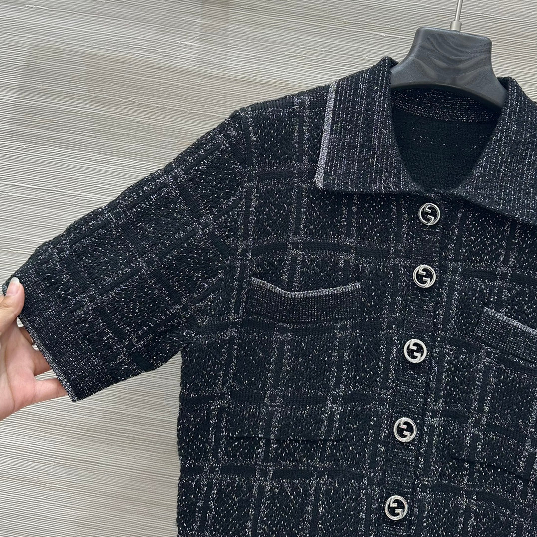 Gucci 25 Knitted Short-sleeved Cardigan Navy Blue Cotton