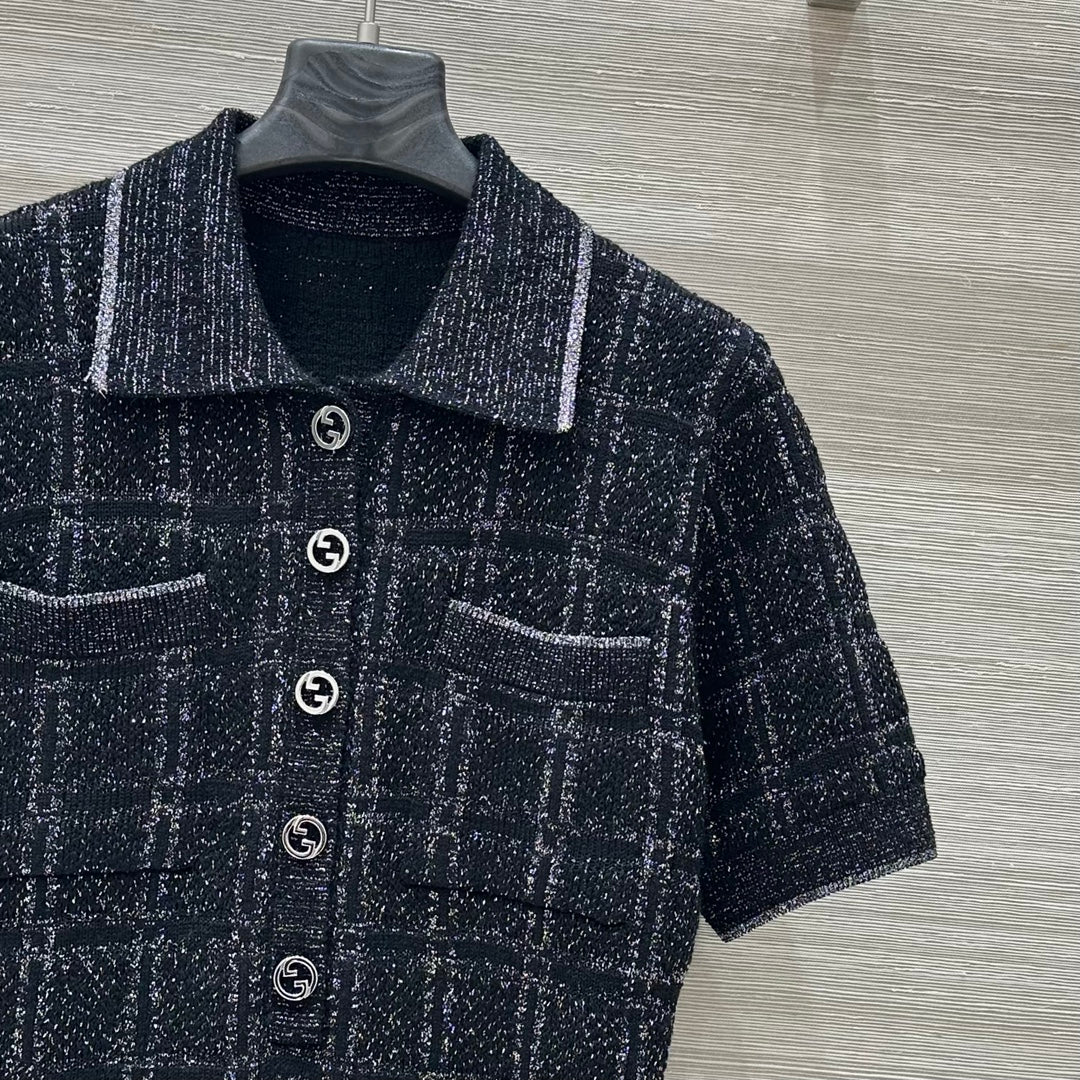 Gucci Knitted Polo Short-sleeved Top Blue Wool