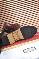 GG Men's Loafer Brown Embossed Cowhide 526094