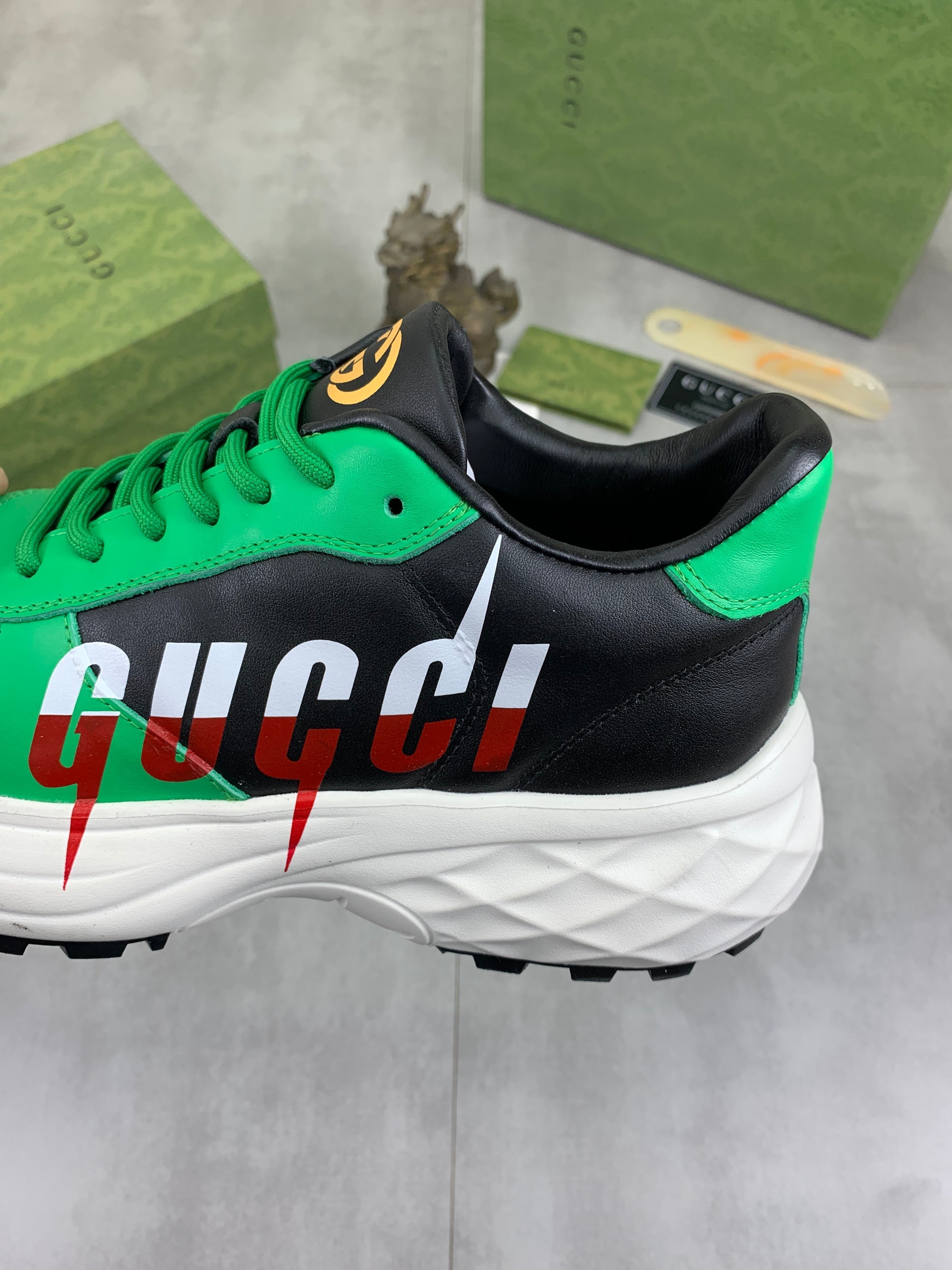 GG Men's Rhyton Sneaker Green White Calfskin 528952