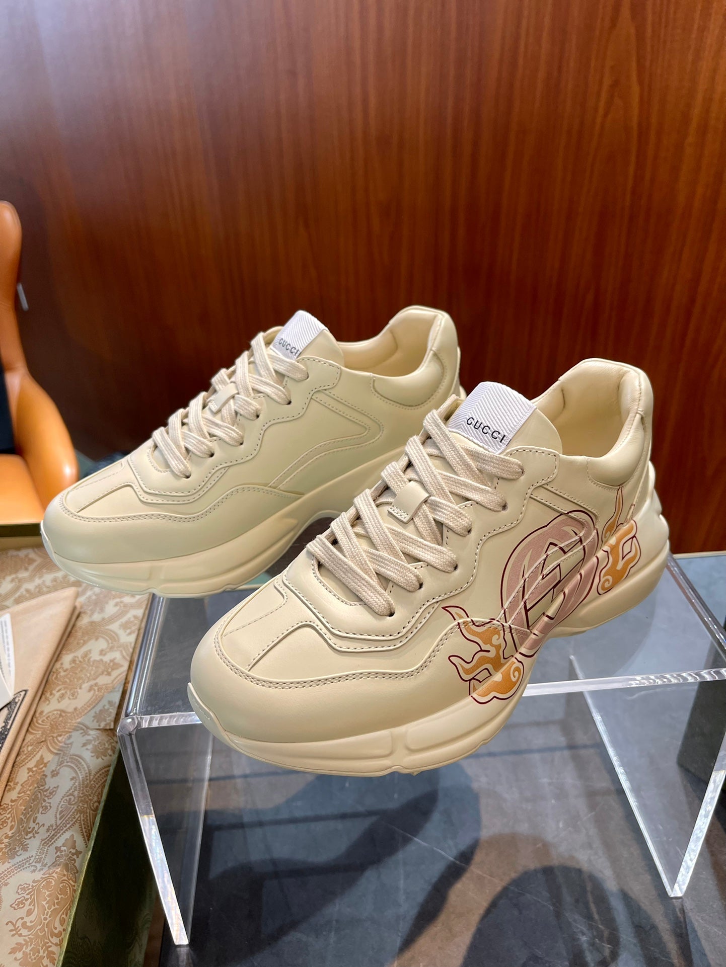 GG Men's Rhyton Sneaker Milk White Calfskin 524496