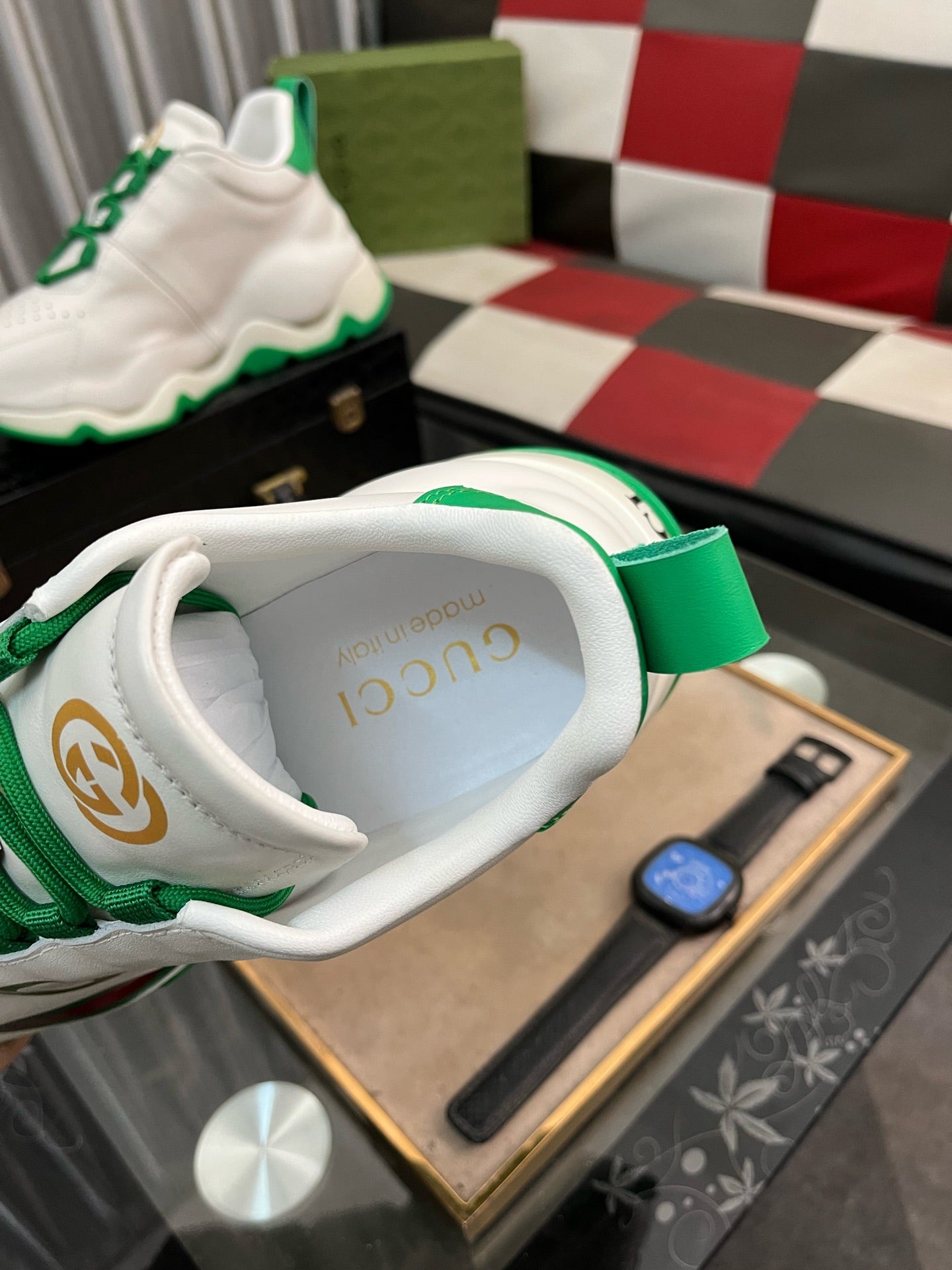 GG Men's Sneaker White Green Cowhide 529925