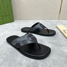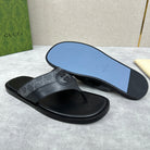 GG Men's Thong Sandals Black Canvas Cowhide 542951
