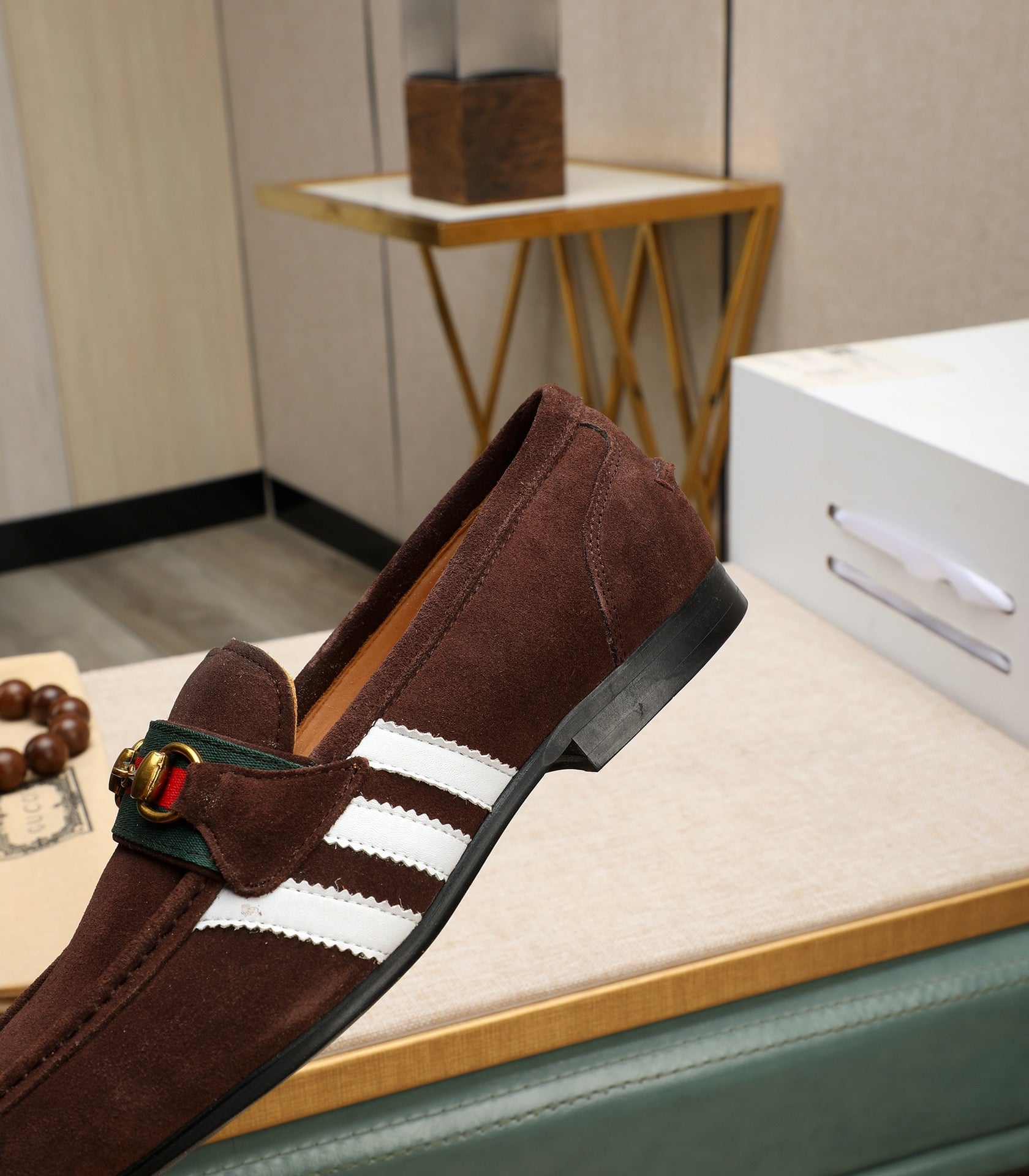 GG x Adidas Men's Jordaan Loafer Brown Suede 456613