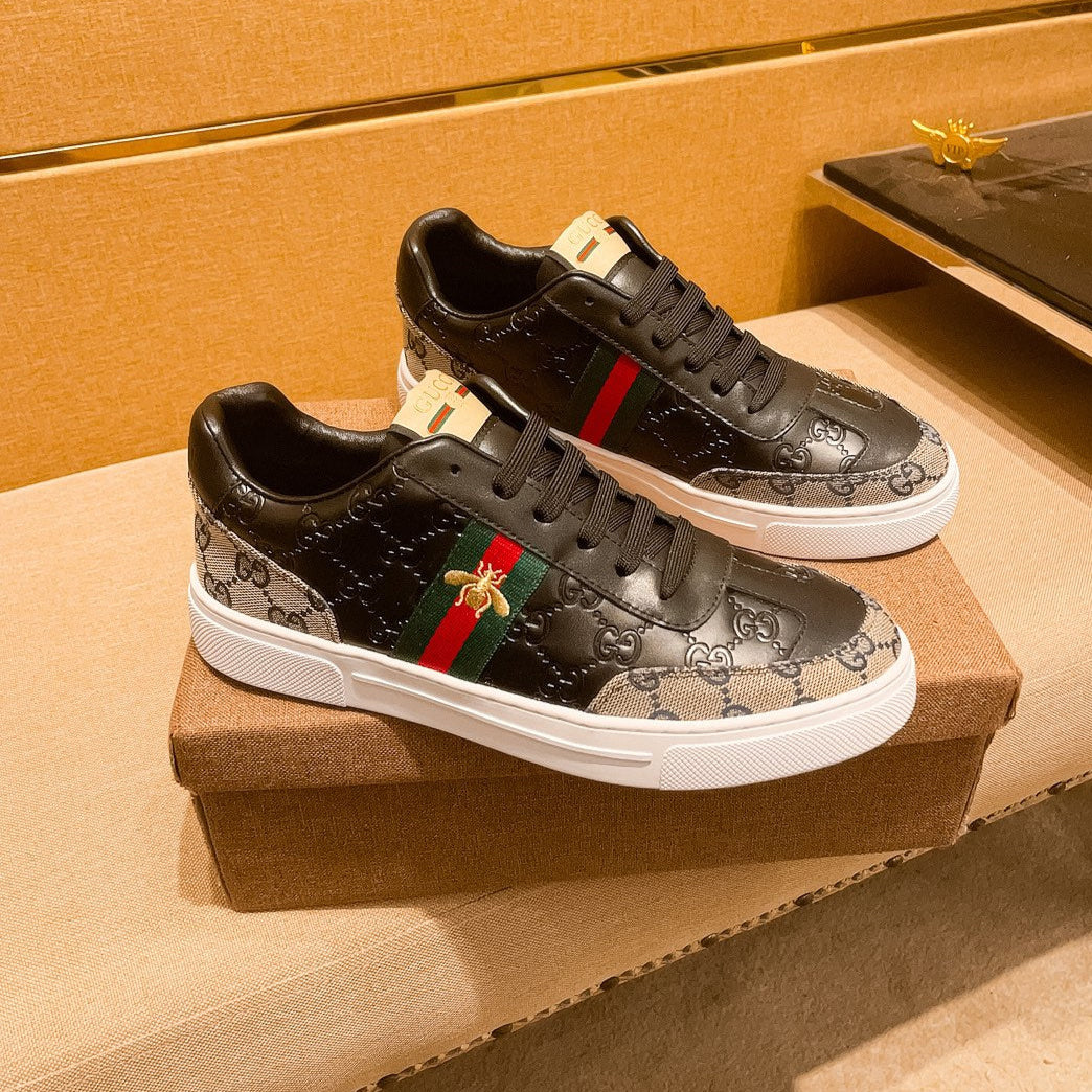 GG Men's Bee Sneaker Black Embossed Pigskin 531262