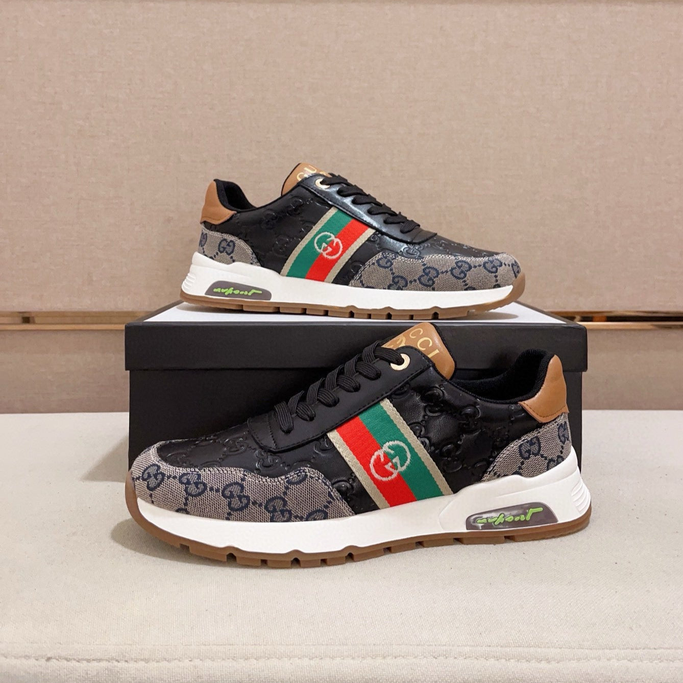 GG Men's Slip on Black Brown Cowhide Canvas 530402