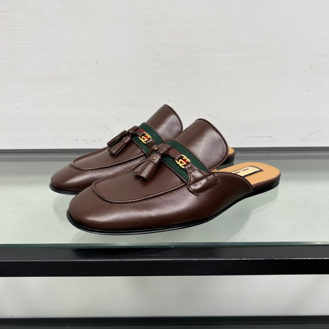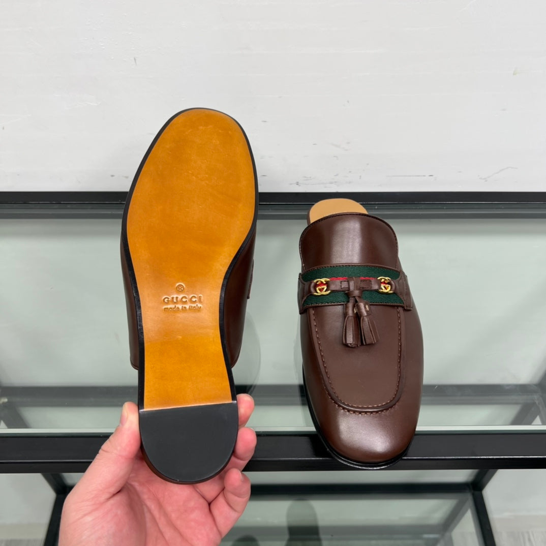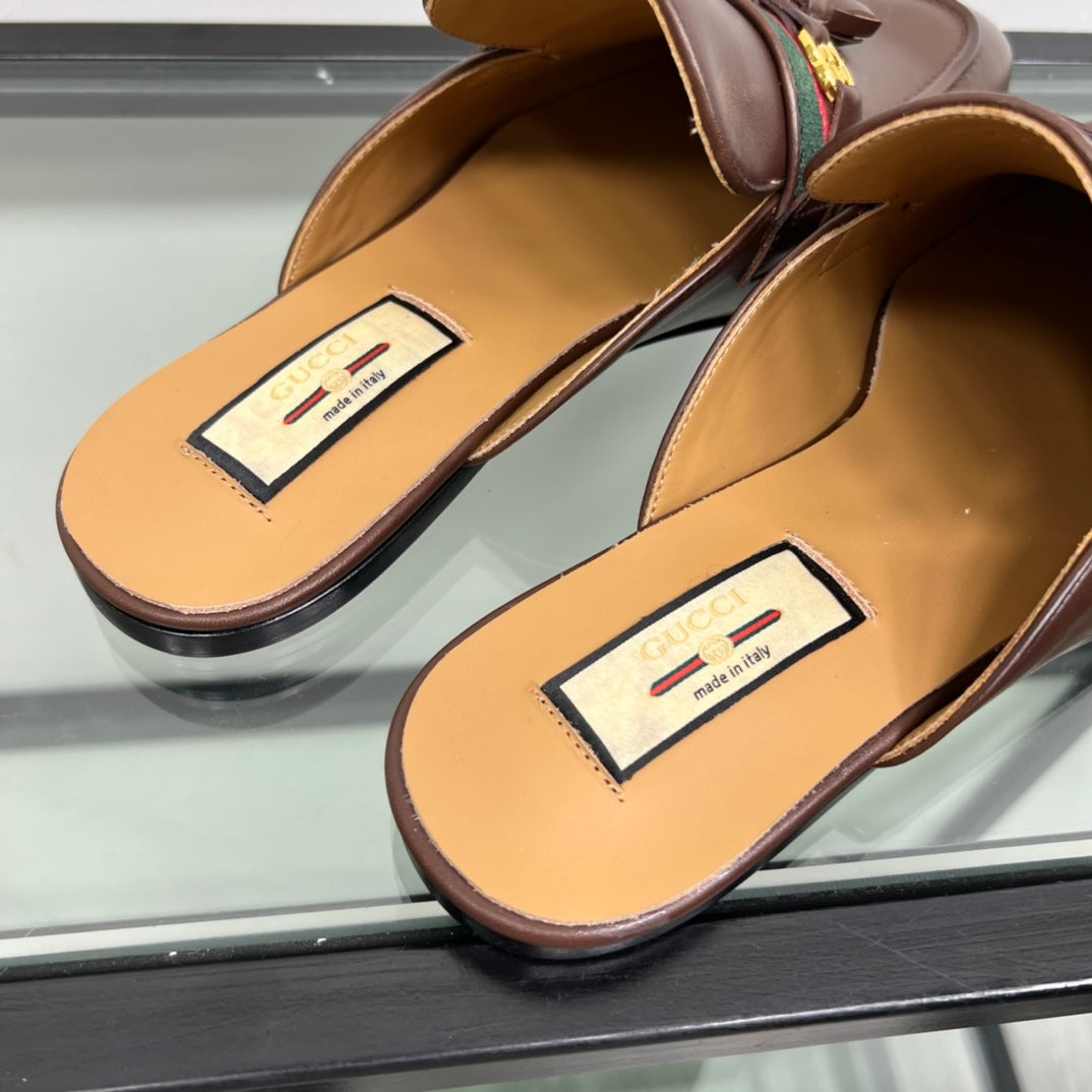 GG Men's Tassel Mule Brown Calfskin 559045