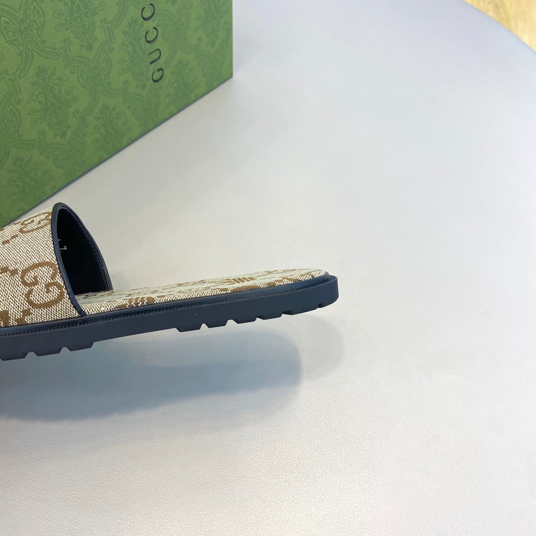 GG Men's Sandals Slide Brown Canvas 558134