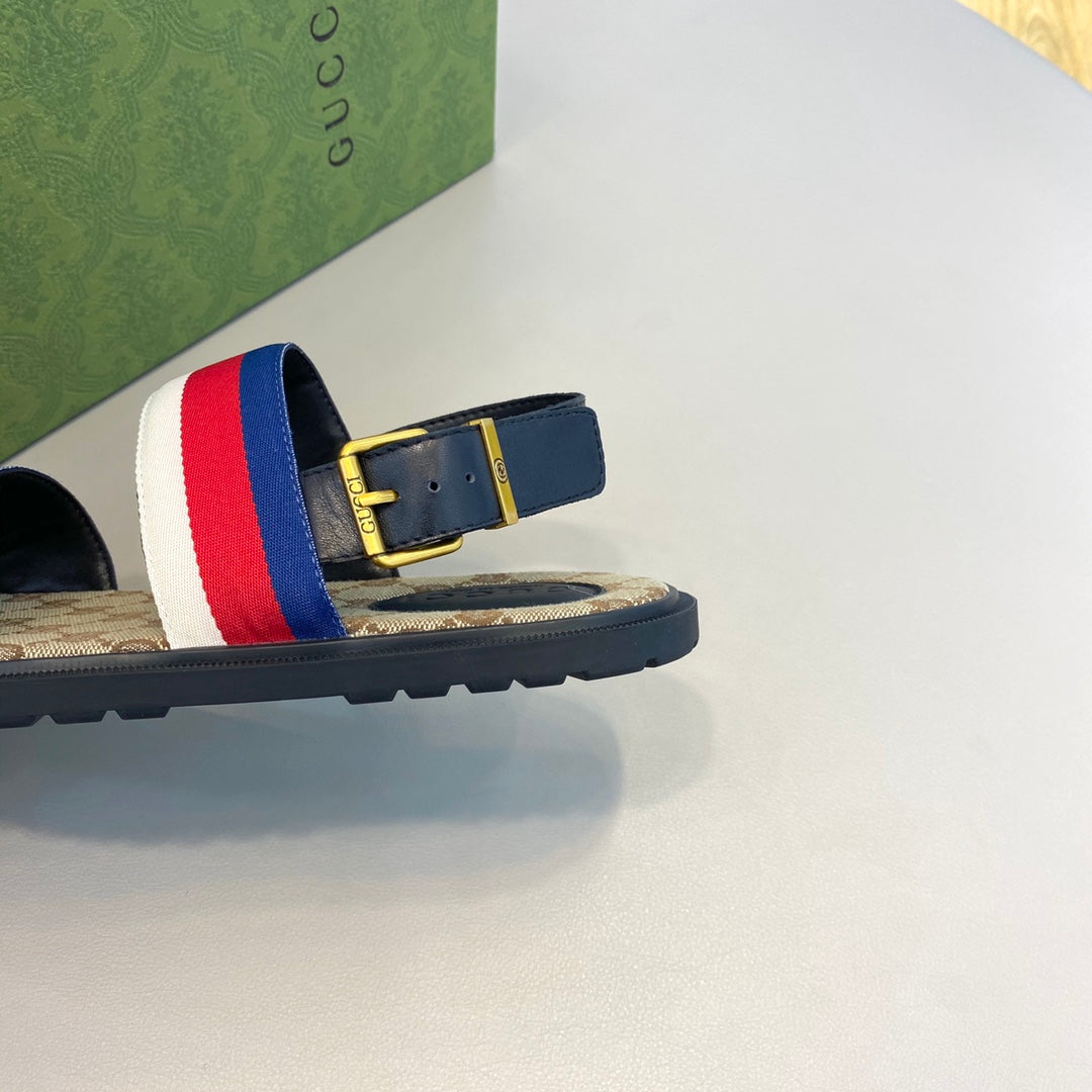 GG Men's Web Sandals Blue Canvas 558887