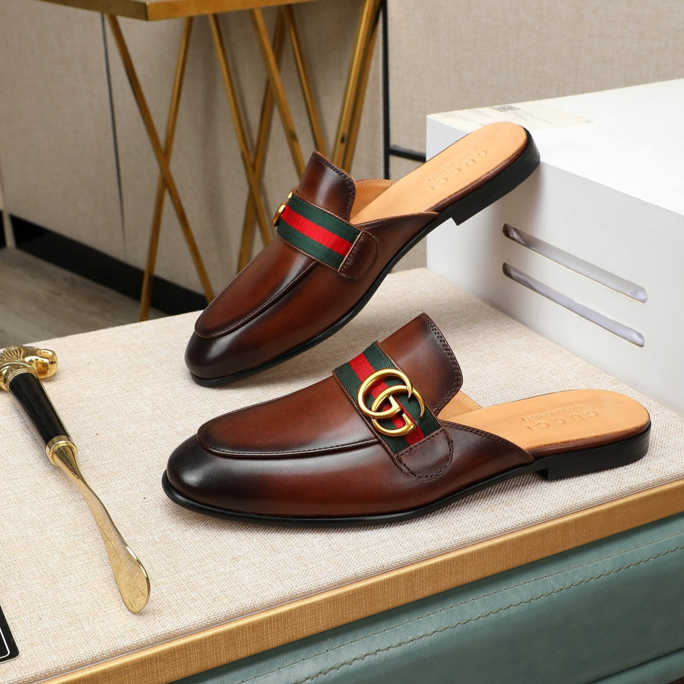 GG Men's Mule Brown Premium Calfskin 559040
