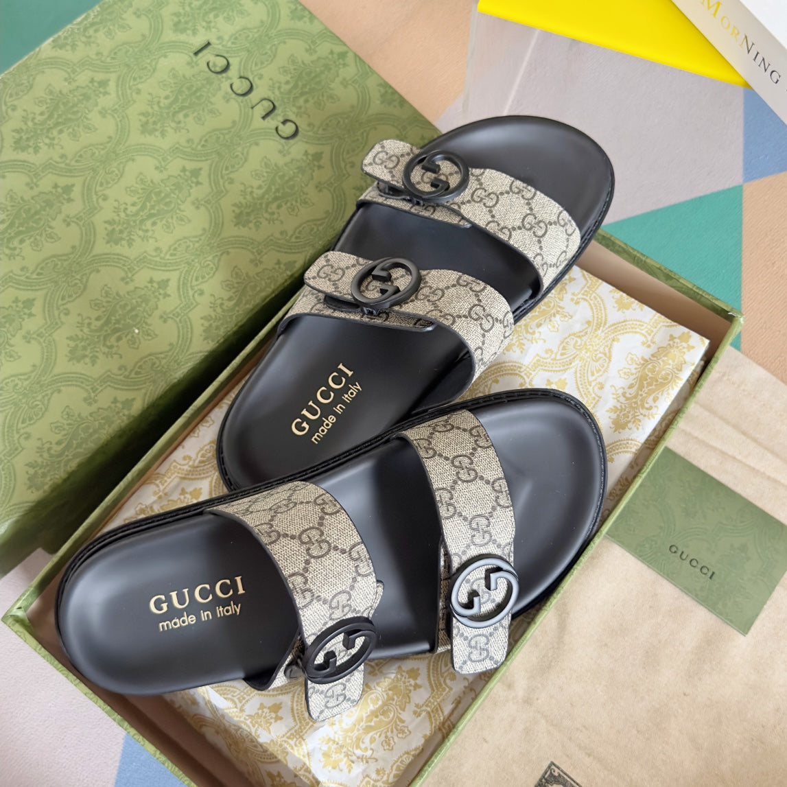 GG x Adidas Men's Sandals Slide Green Canvas 558905