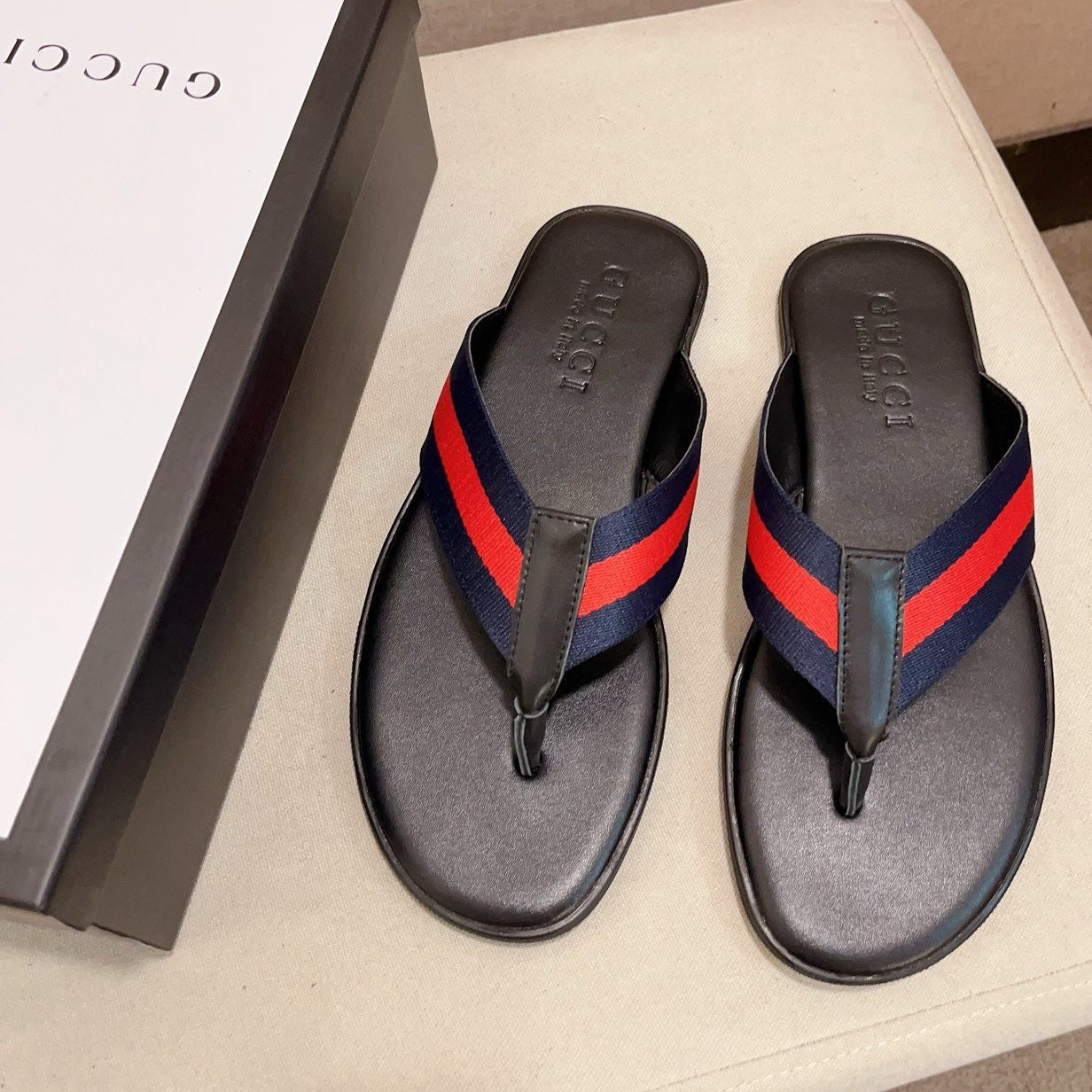 GG x Adidas Men's Thong Sandals Grey Canvas 558901