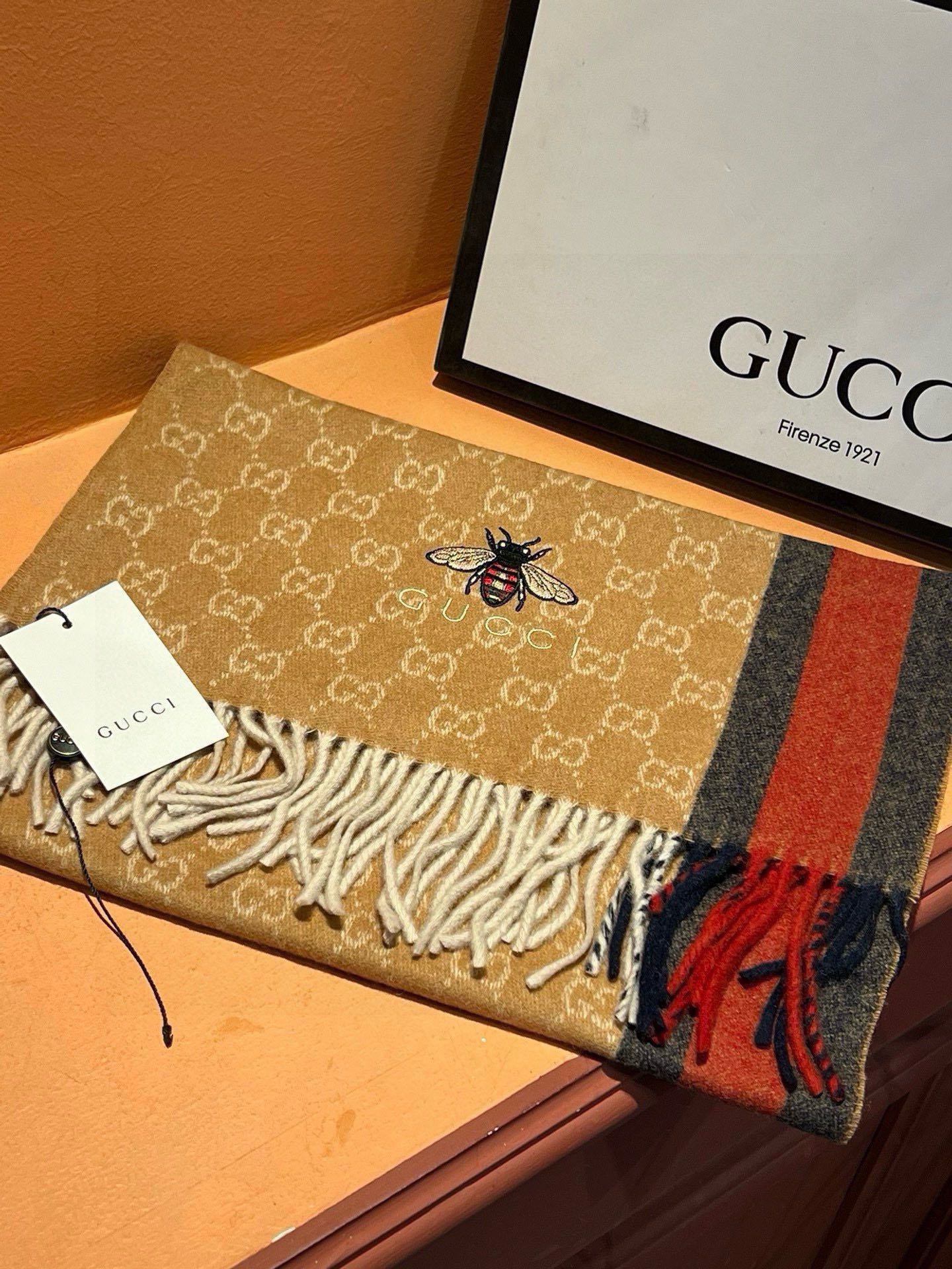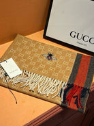 SCARF 180 CM IN COPPER BROWN CASHMERE WITH BEE PATTERN 396474
