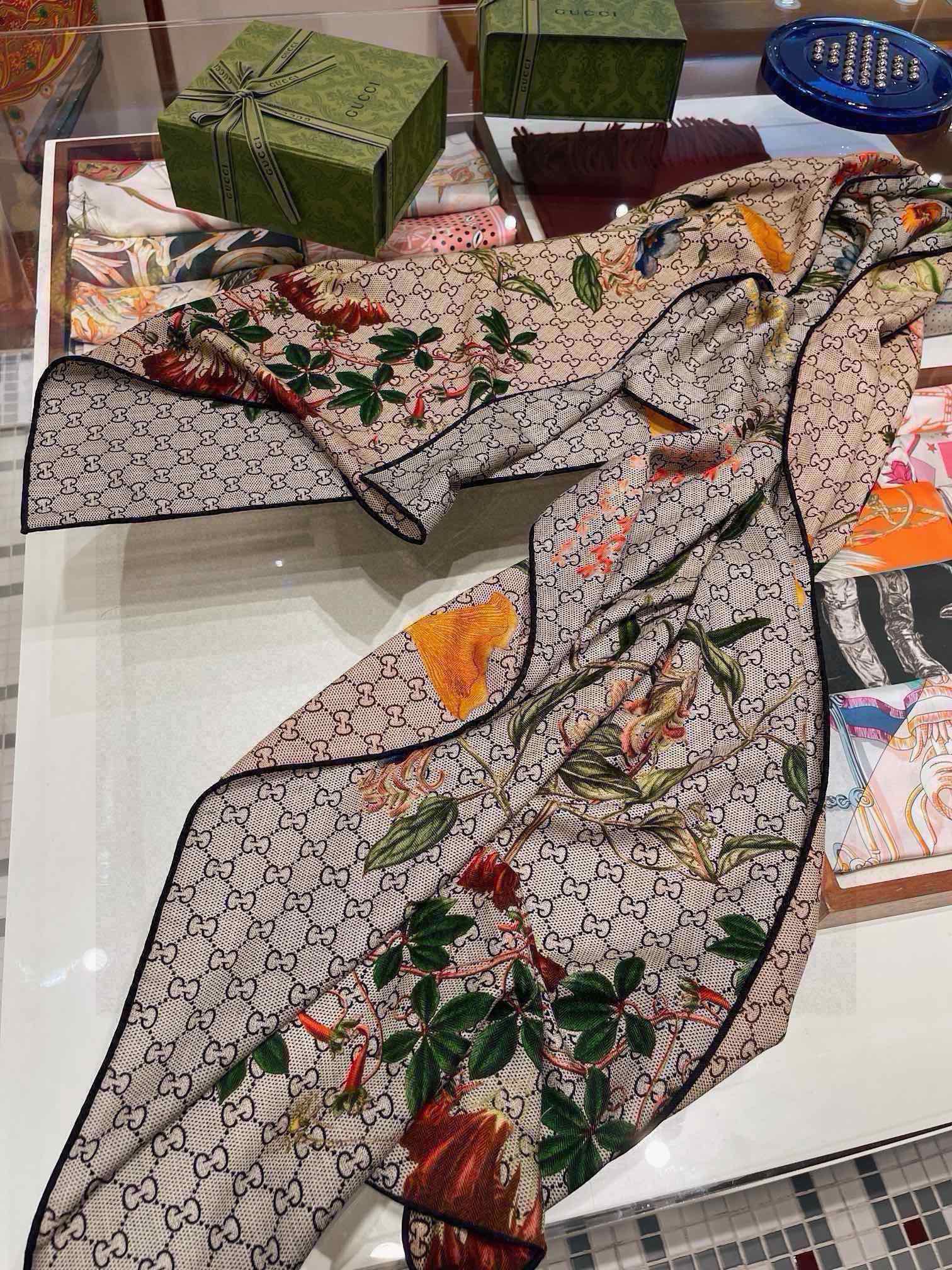 SCARF 180 CM IN KHAKI BROWN MONOGRAM CASHMERE 405276
