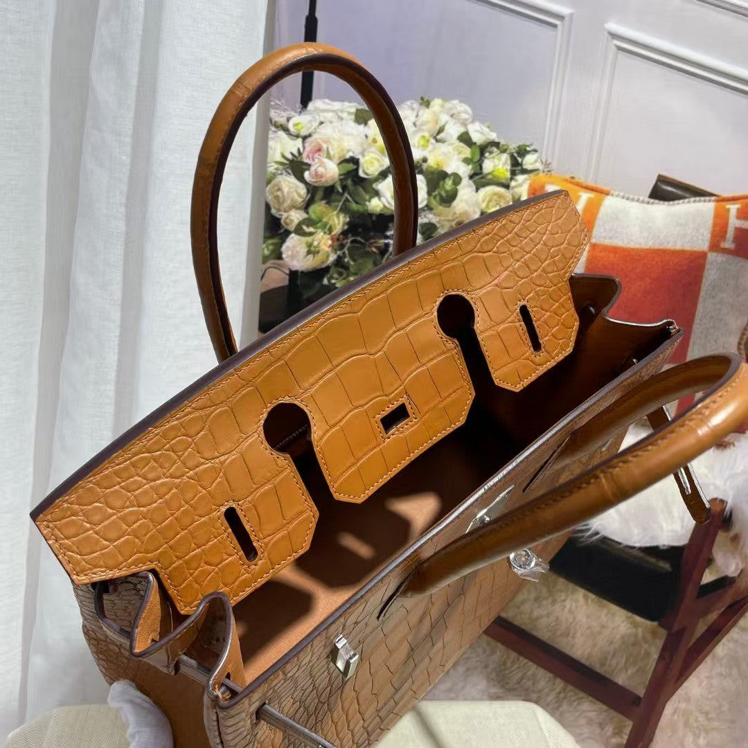 HM BIRKIN 30cm Bronze Matte Alligator Leather Silver Hardware