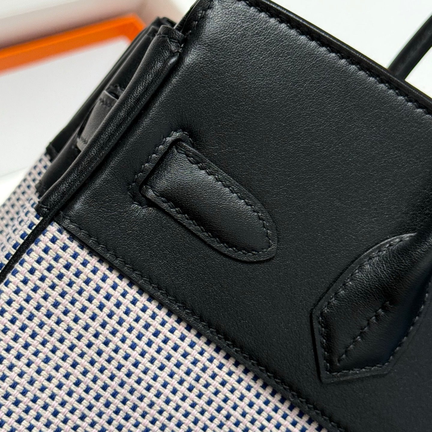 HM Birkin 25cm Black Swift Cowhide With Black White Checkered Canvas Fabric Shw 249986