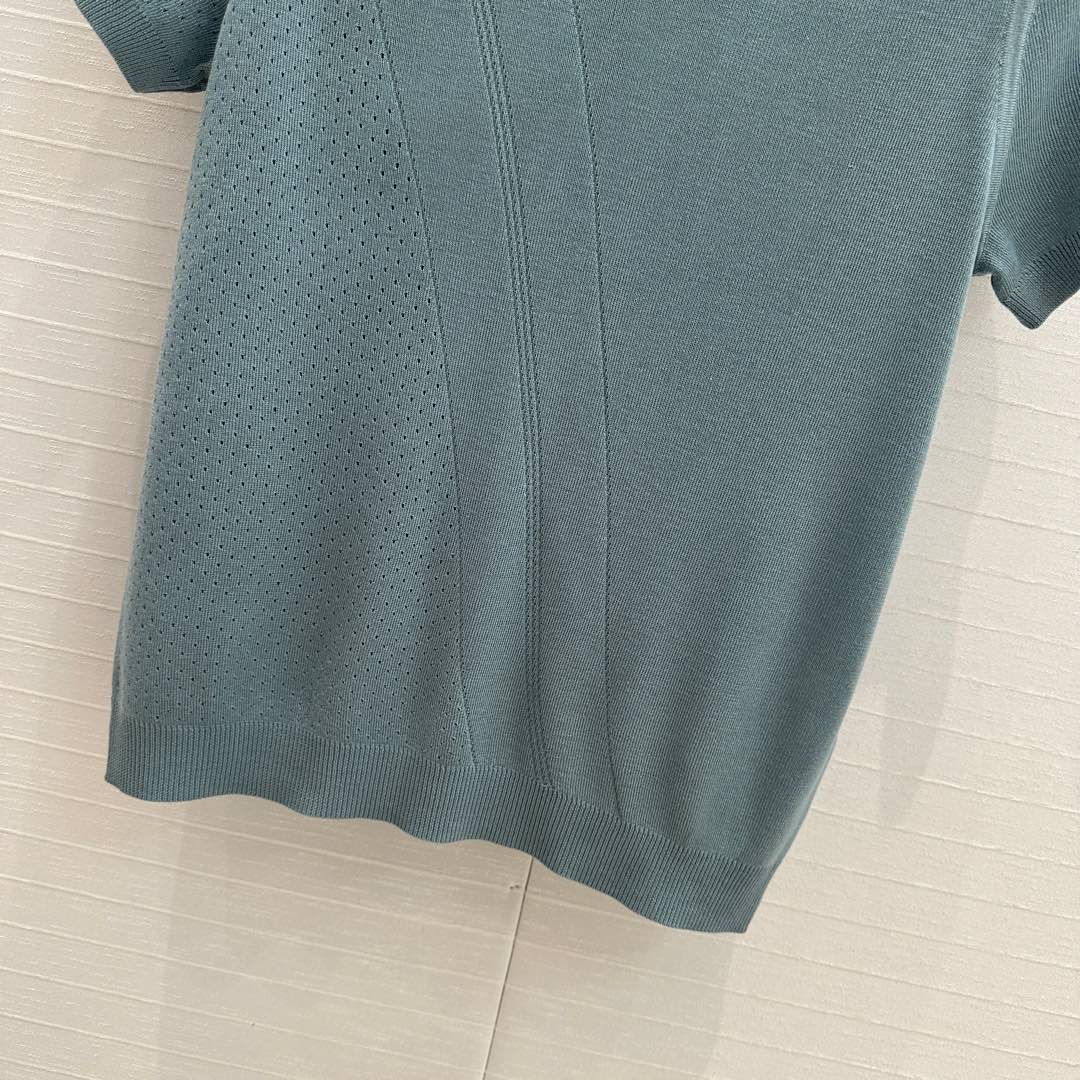 Hm 25 Hollow Knit Short-Sleeve Top Blue Green Tencel Cotton