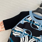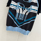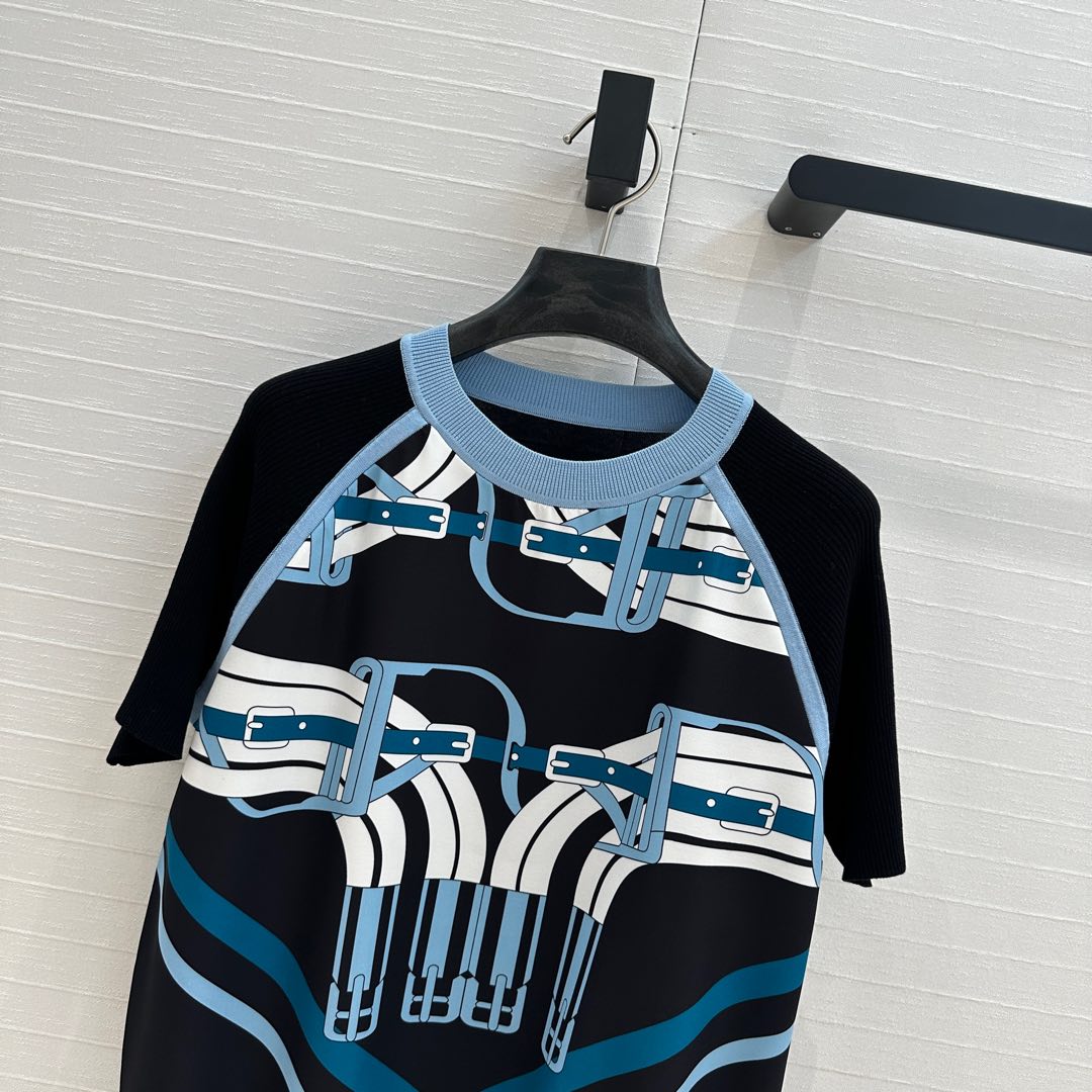 Hm 25 Print Patchwork Knit Top Black Blue Tencel Wool