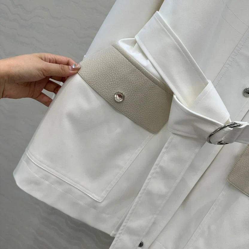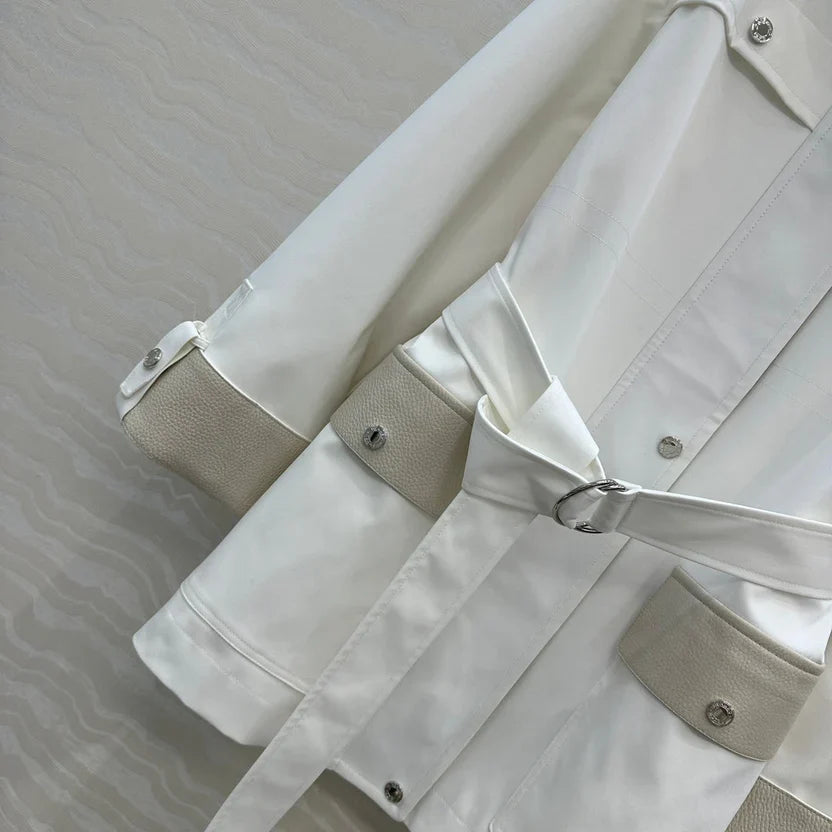 HM 25S Majia H-Belt Coat in White Goatskin