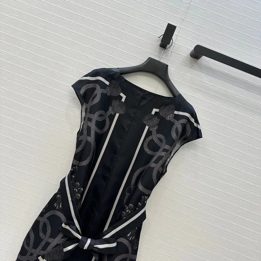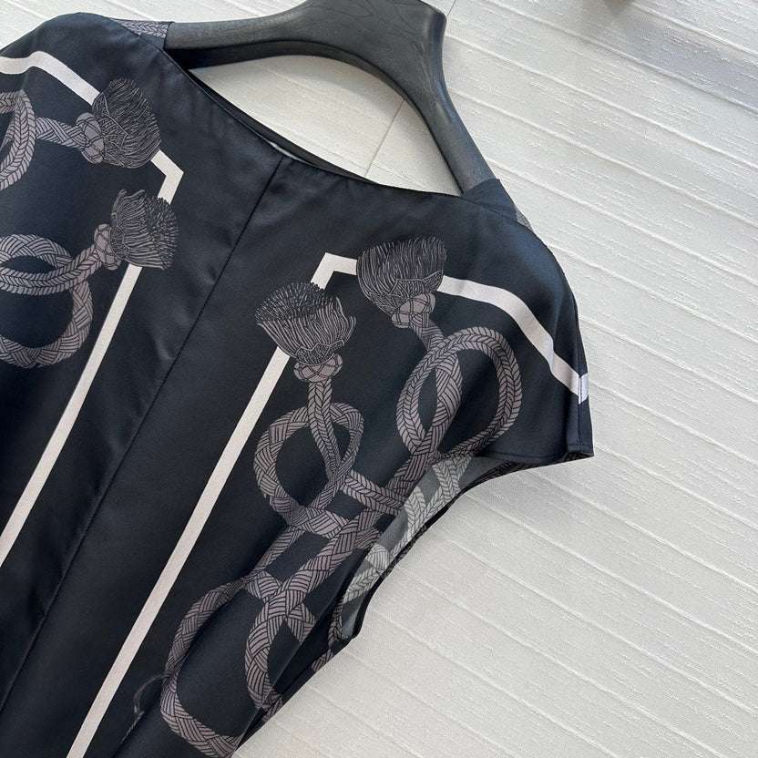 HM 25S Palefroi Remix Sleeveless Dress Graphic Print in Black Silk