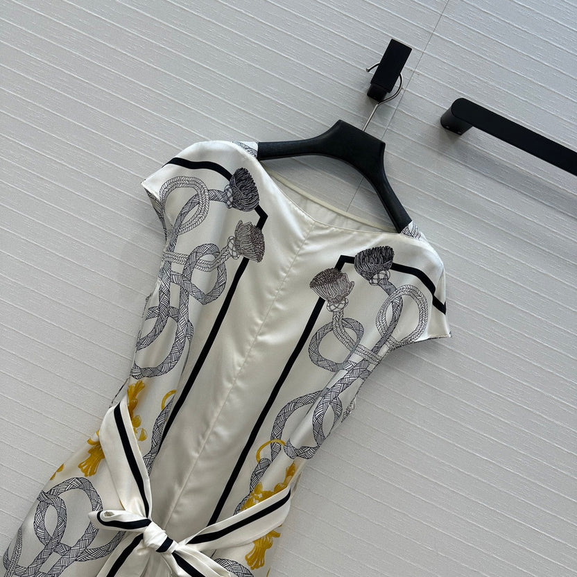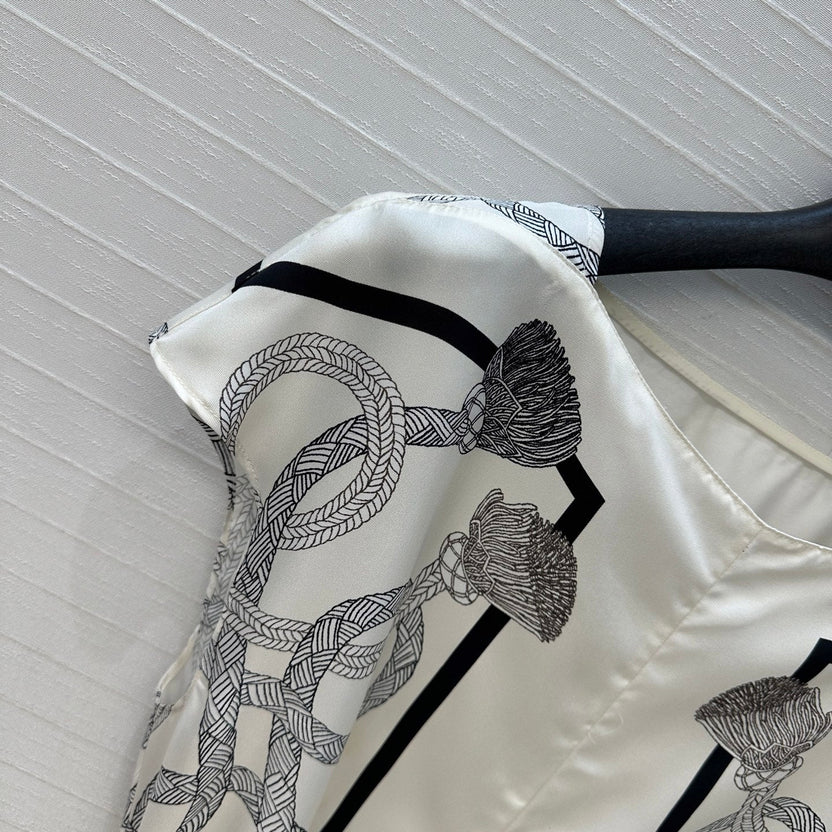 HM 25S Palefroi Remix Sleeveless Dress Graphic Print in White Silk